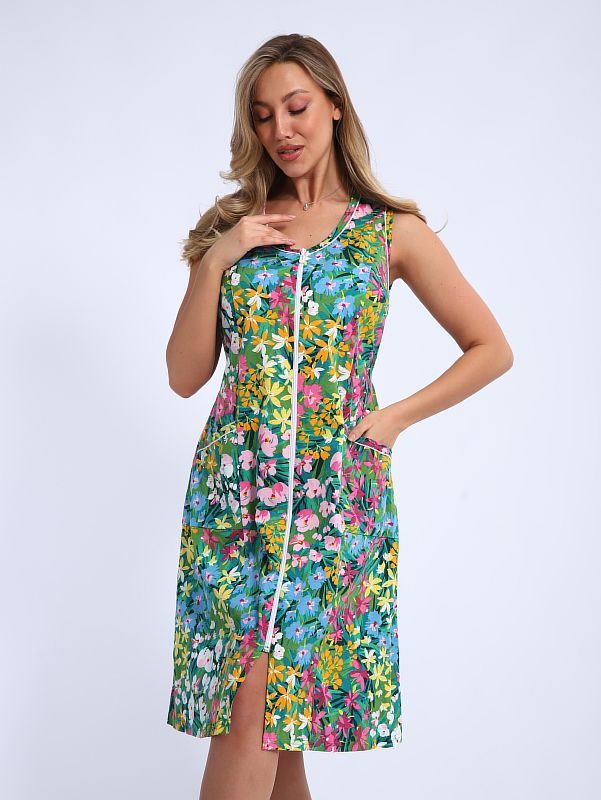 Халат женский на молнии без рукава.