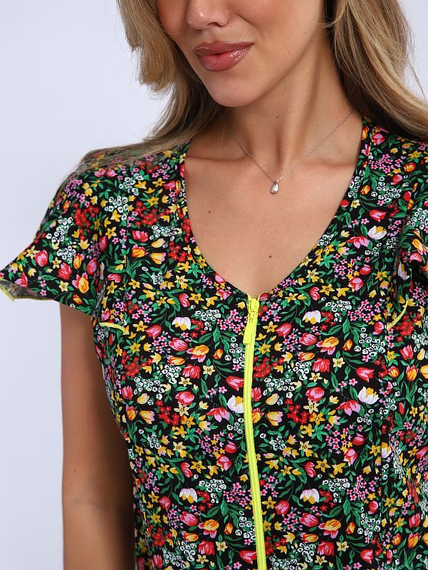 Женский халат на молнии. На полочке рельефы для идеальной посадки. Рукав- крыло и оборка но низу изделия