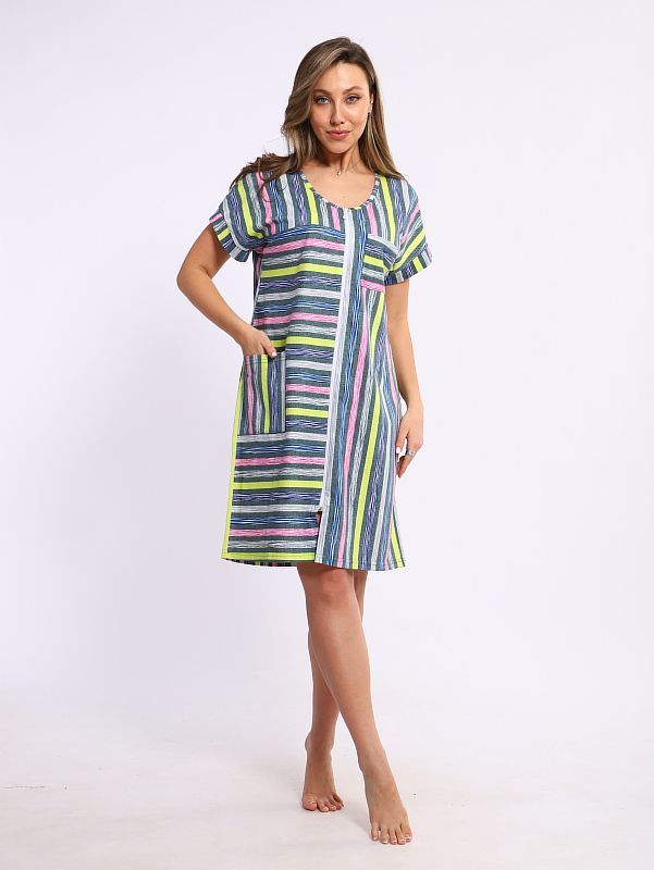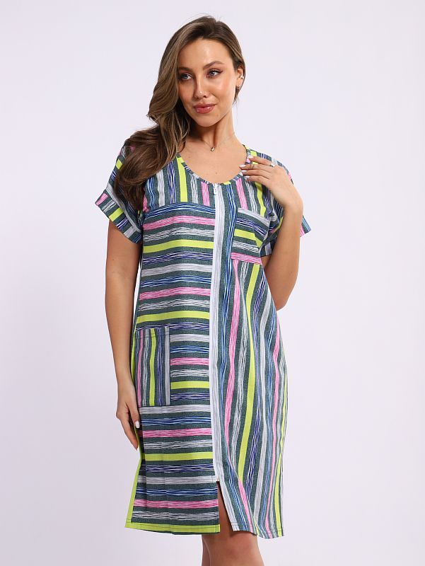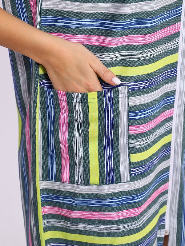 халат на молнии в полоску , спущенный рукав,свободный крой, игра полосой создает стильный образ