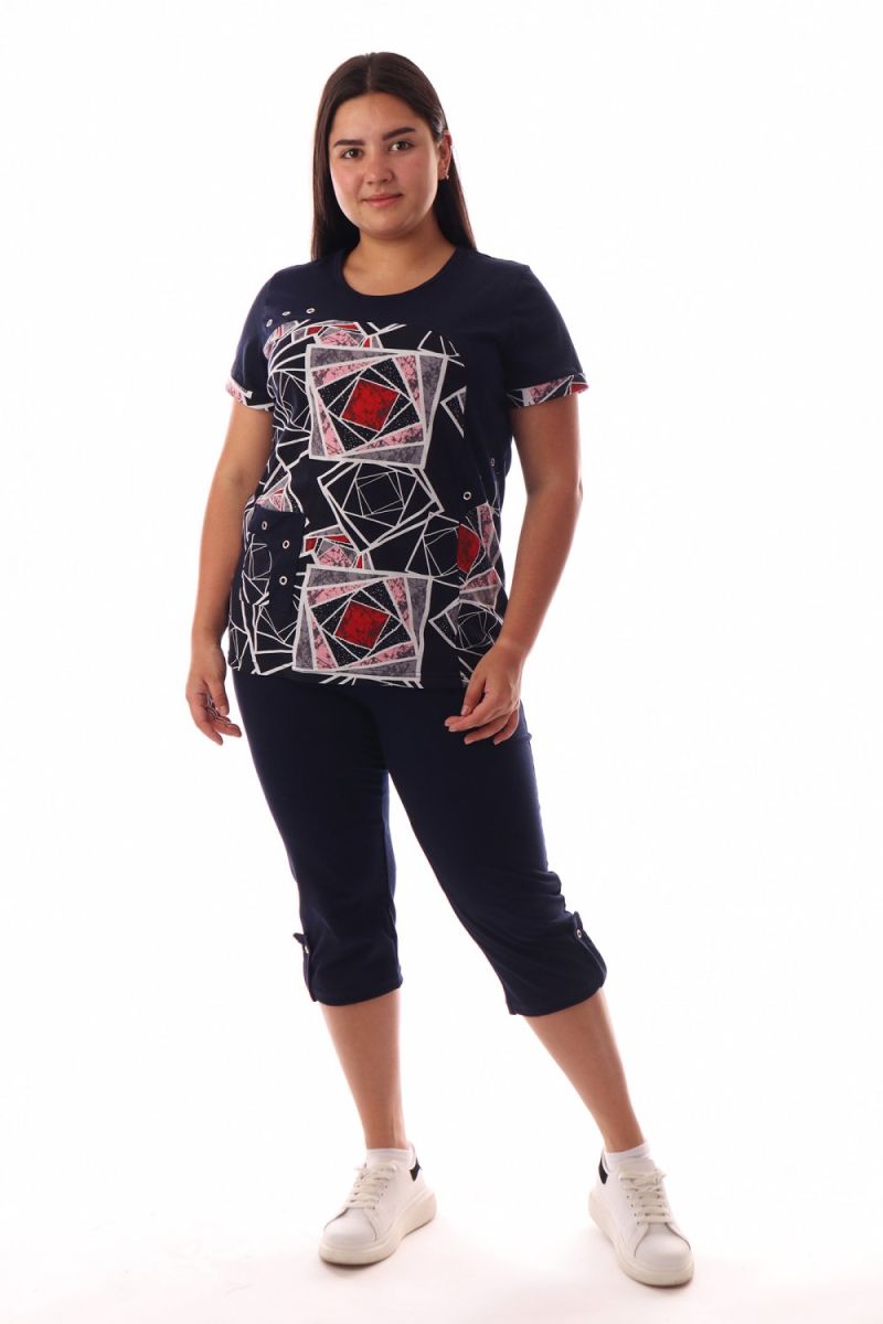 Трикотажный черный женский костюм с геометрическим узором, представленный в нашем каталоге, является удачным решением для женщин, которые ценят стиль и комфорт. Такая модель из 100 %-ного хлопка – настоящая находка для повседневного и домашнего отдыха. Данный вариант черного костюма из трикотажа представлен в широком размерном ряду – от 50-го до 60-го размера включительно.