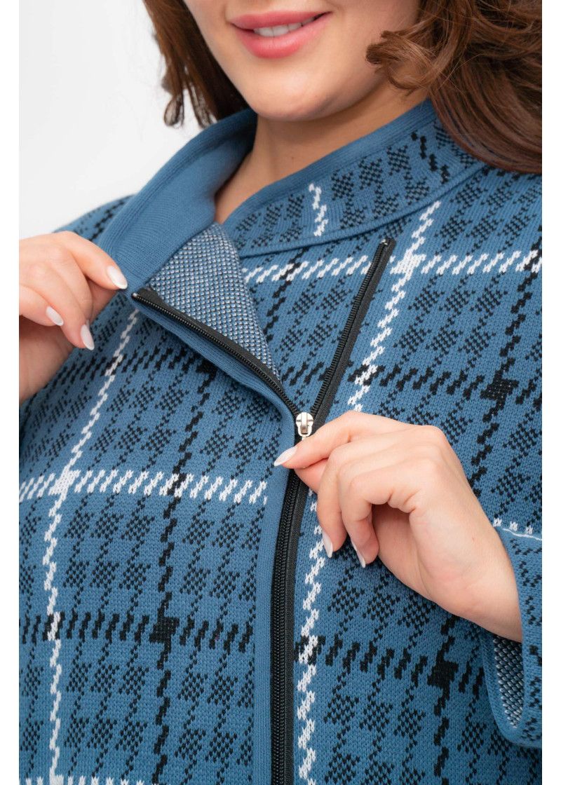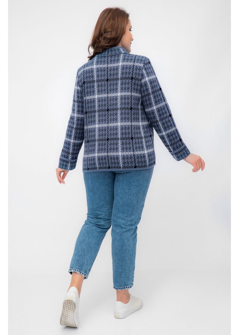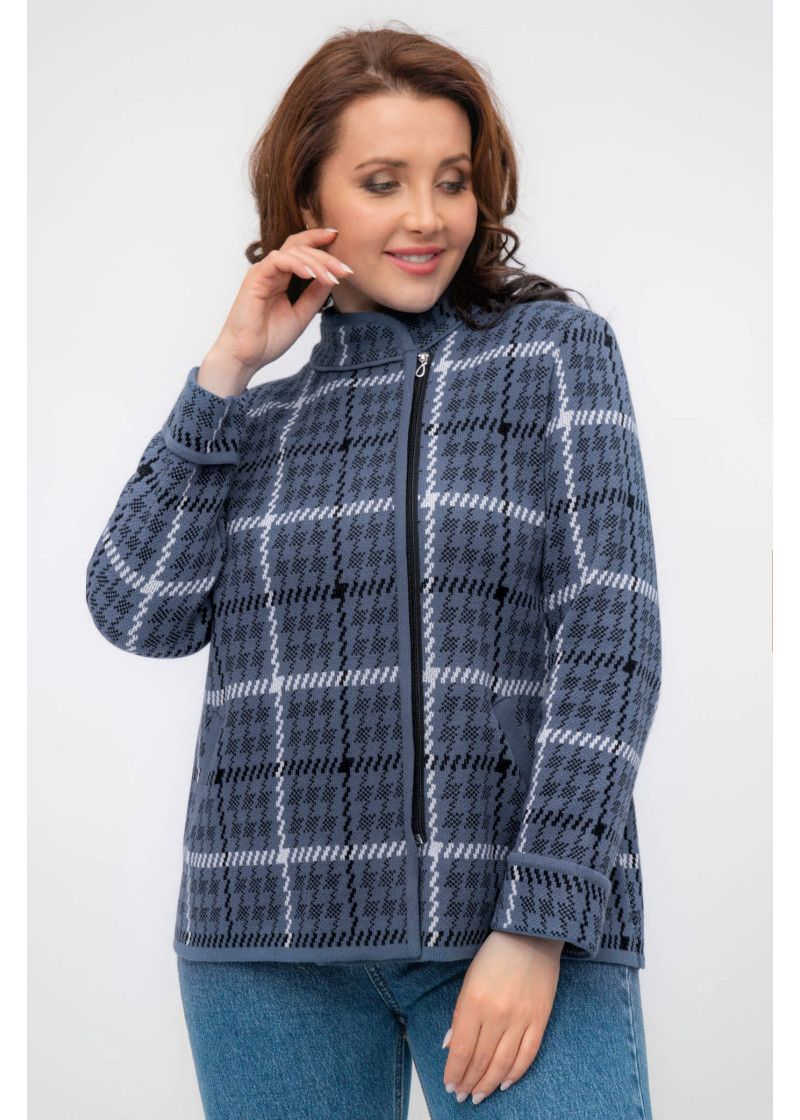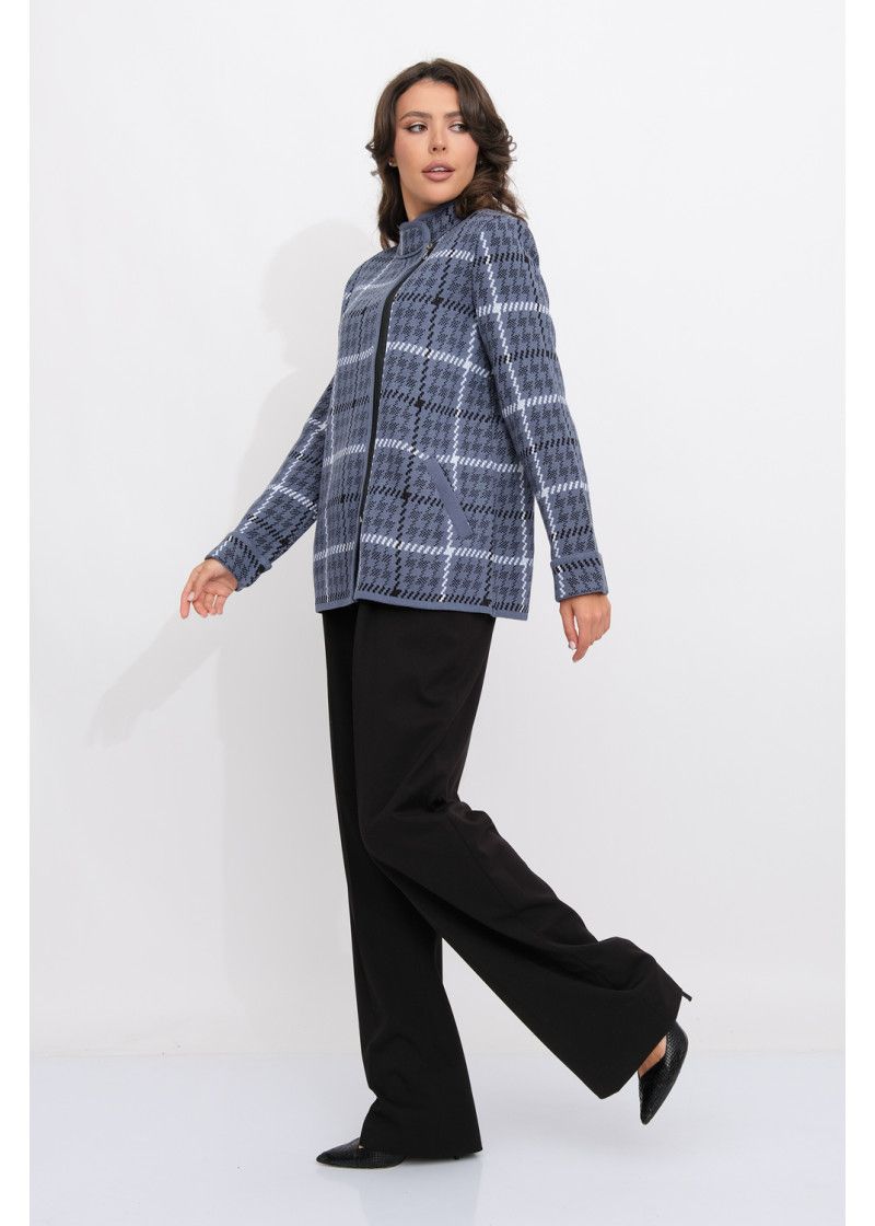 Жакет свободного силуэта с воротником-стойка. Рукав втачной длинный с отворотом. По бокам два прорезных кармана. Ассиметричная застежка на молнию. Изделие выполнено жаккардовым переплетением образующим клетку.