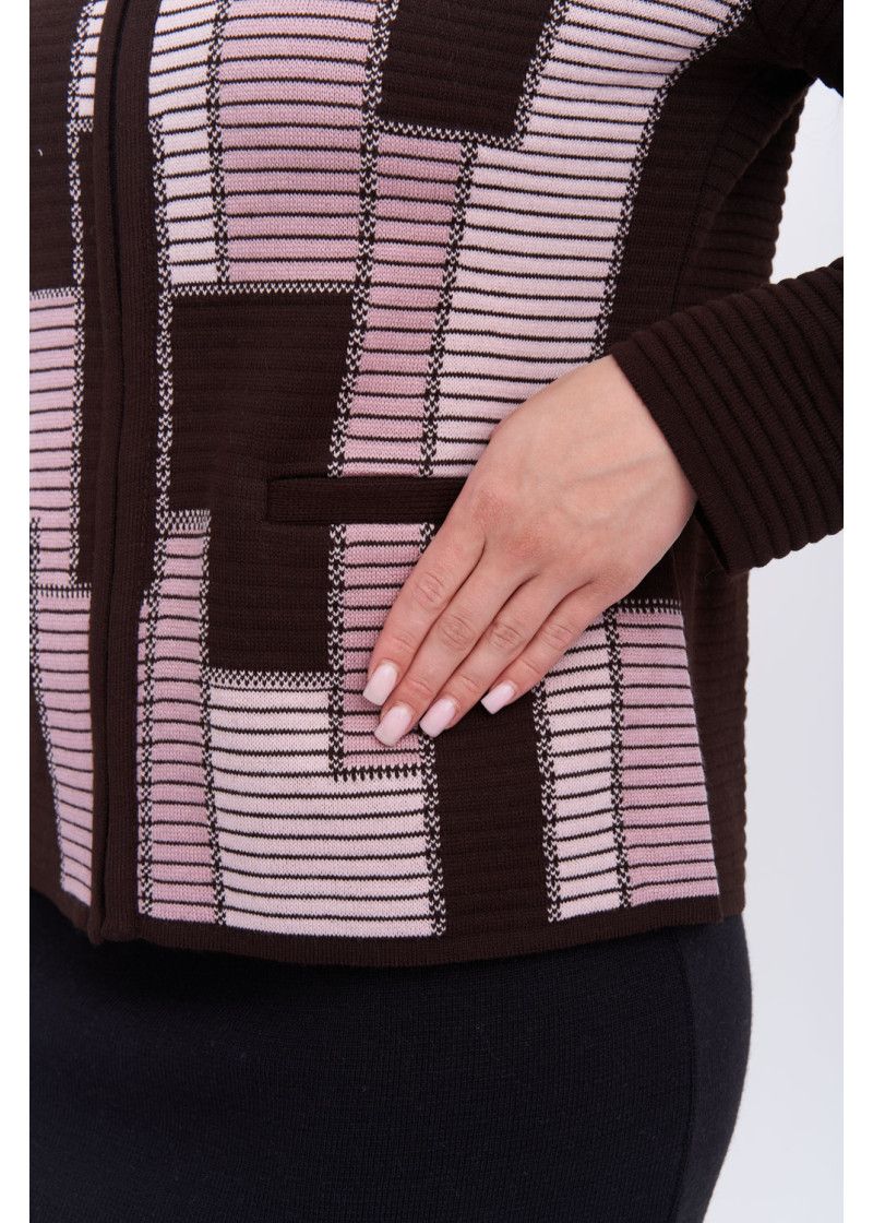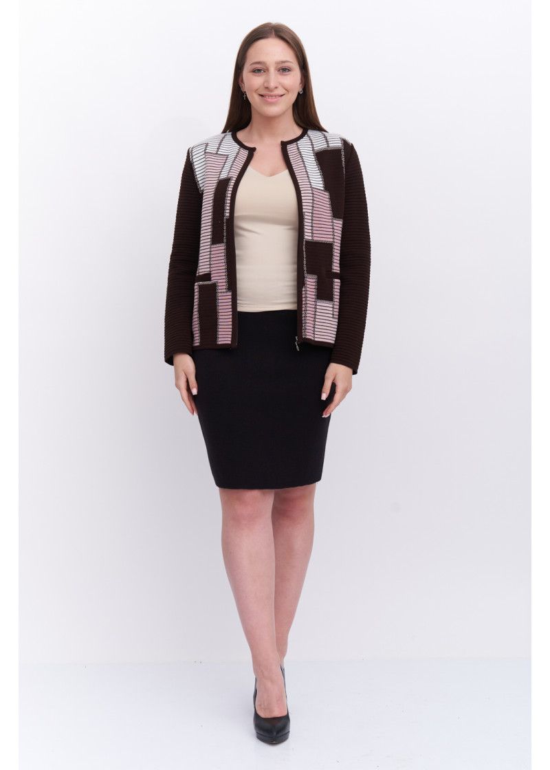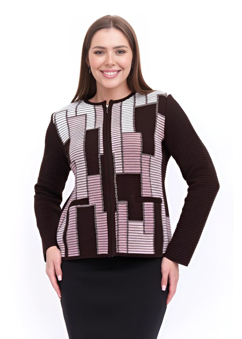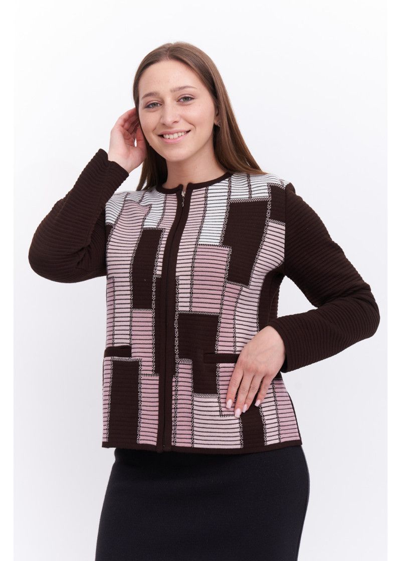 Женский вязаный жакет полуприлегающего силуэта на молнии. Рукава втачные, длинные. Жакет выполнен из качественной пряжи с составом 30% хлопок 70% ПАН. Модель имеет функциональные прорезные карманы с листочкой. Жакет выполнен переплетением, образующим валики, за счет чего имеет комфортную посадку по фигуре и эффектный внешний вид. Расцветку модели составляют геометрические фигуры контрастных цветов по переду изделия. Цвет спинки и рукавов поддерживает основной тон жакета. Легкий, яркий, эффектный жакет поддержит и деловой образ, и праздничное настроение. Отлично сочетается с любым низом в комплекте. Модель классическая, праздничная и повседневная, абсолютно на любой случай в жизни.