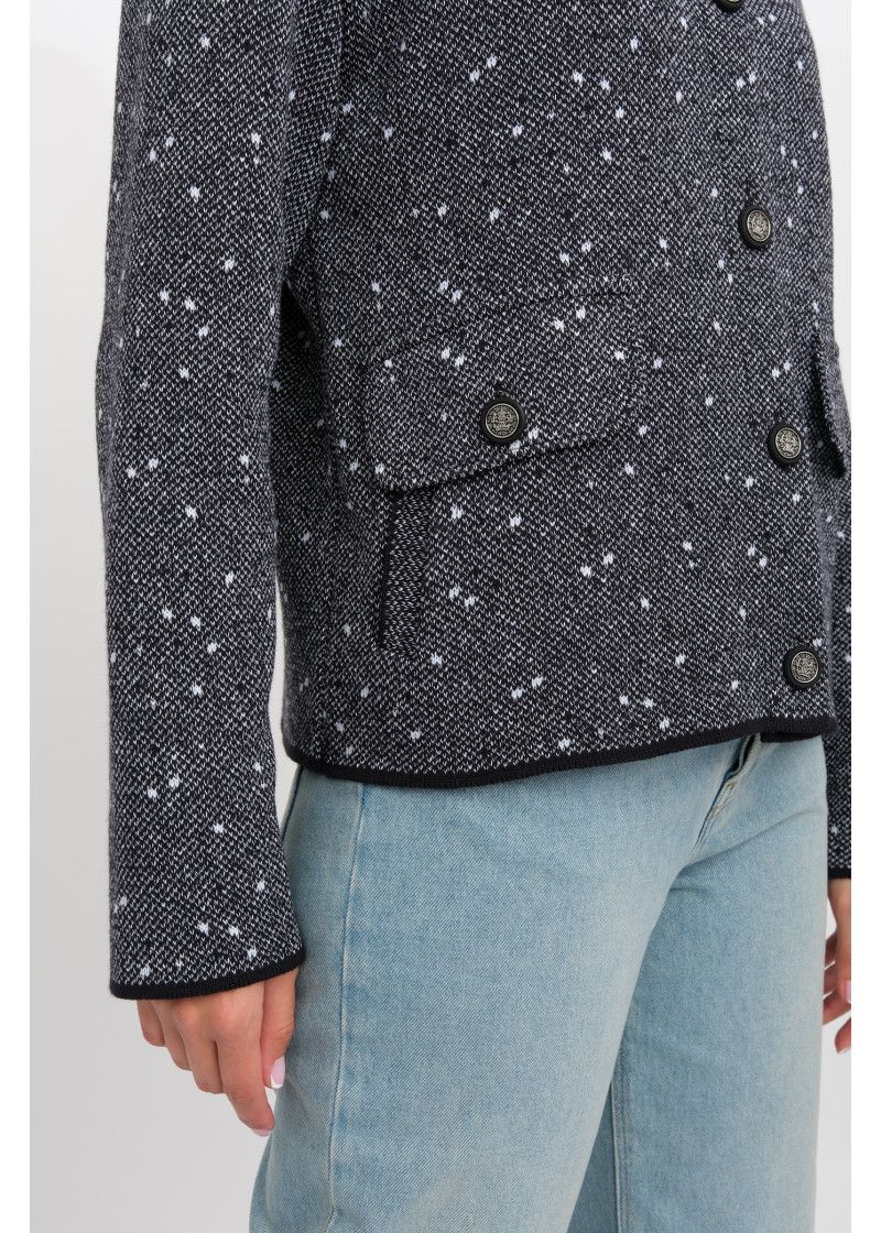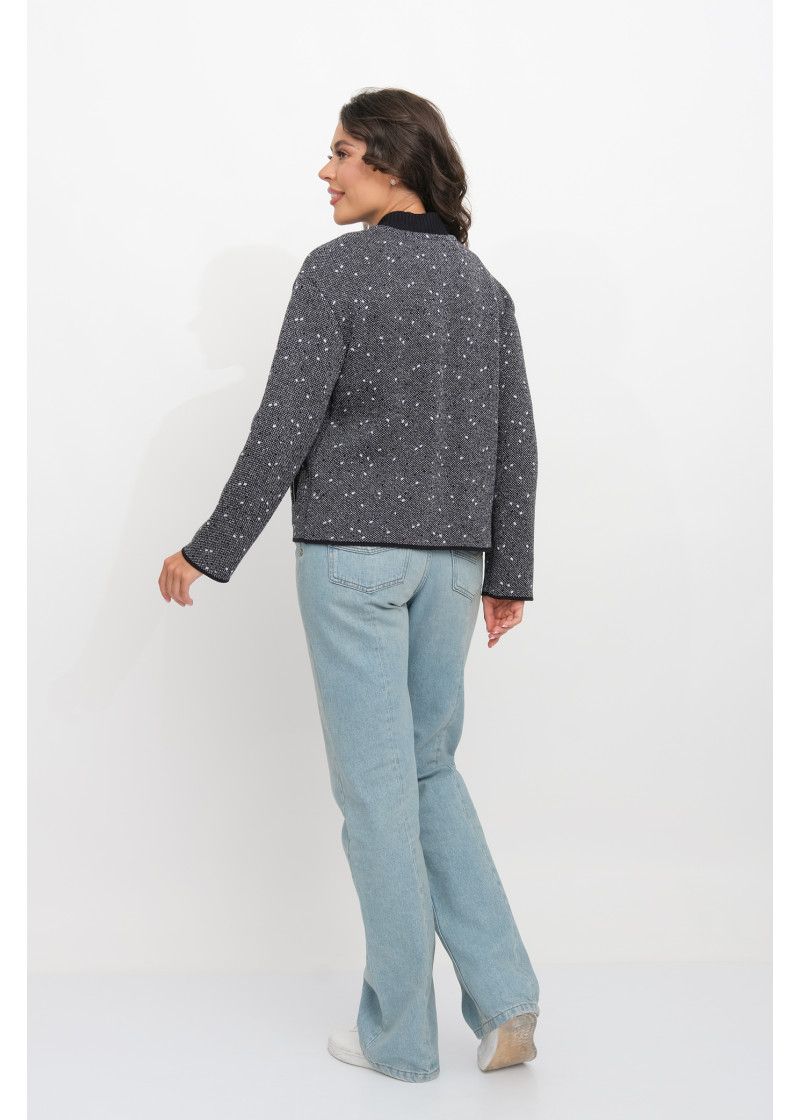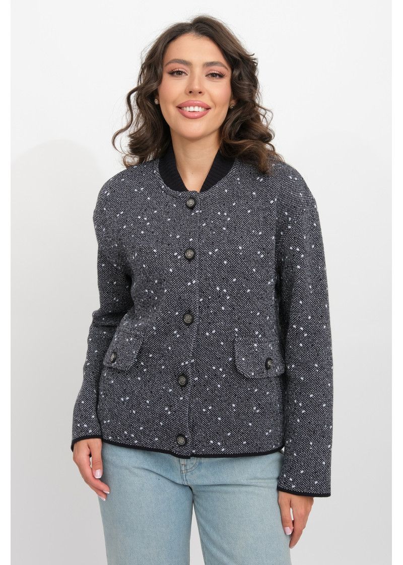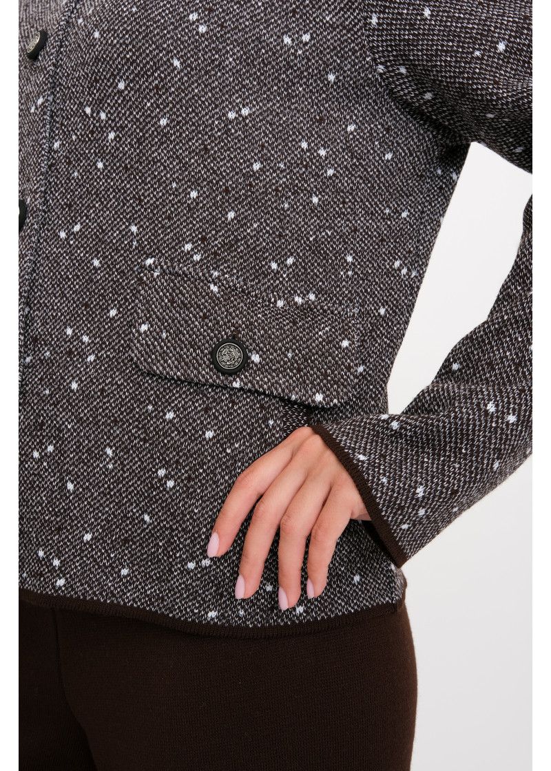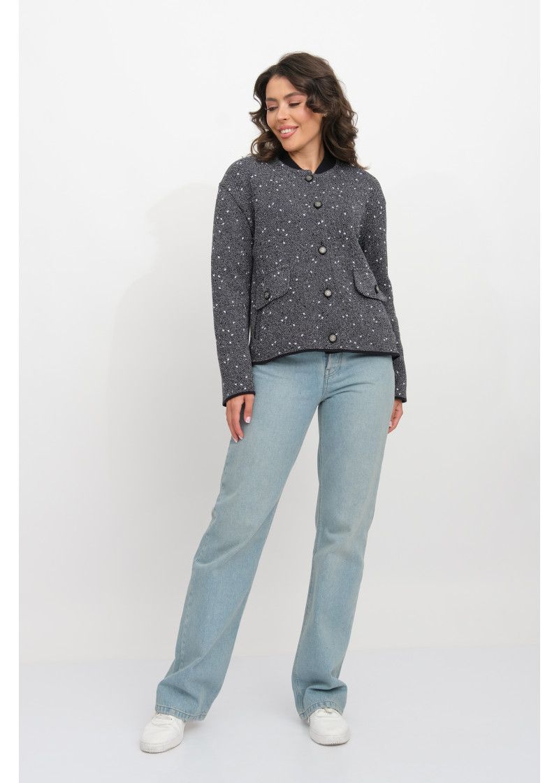 Жакет женский полуприлегающего силуэта с круглой горловиной, отделанной трикотажной полустойкой. Жакет вязанный на пуговицах, выполнен жаккардовым переплетением. Карманы прорезные с боковым входом, оформленные клапаном. Данный жакет позволяет создать свой стиль на любой вкус и настроение: женственный – с платьем, юбкой, балетками или сапогами. Спортивно-повседневный – с джинсами, брюками и кроссовками. Жакет обеспечивает комфорт и стиль одновременно.