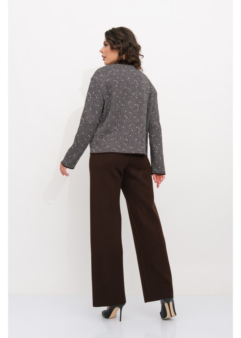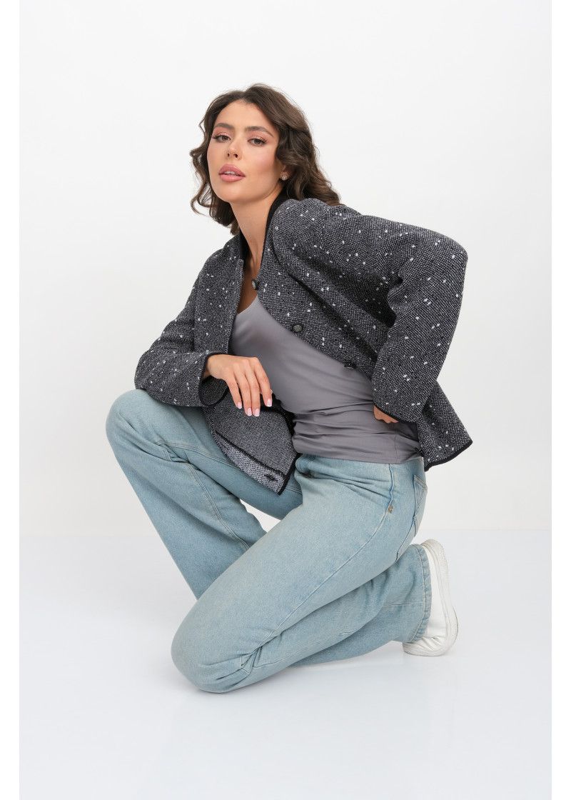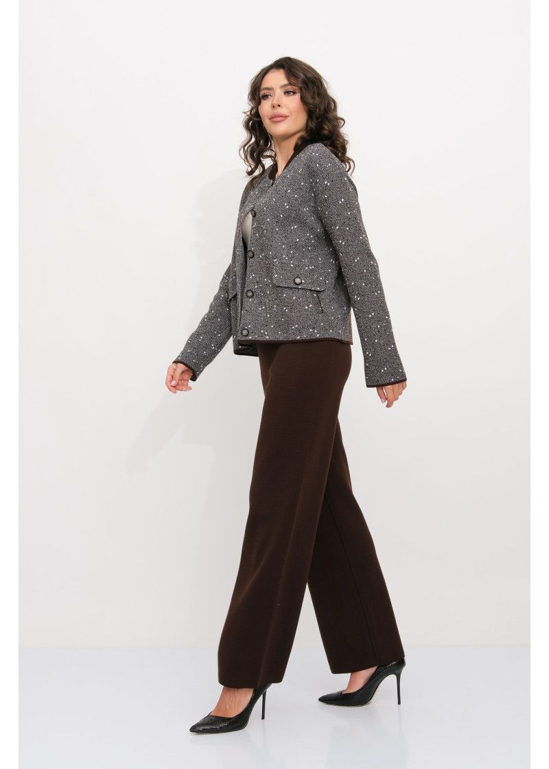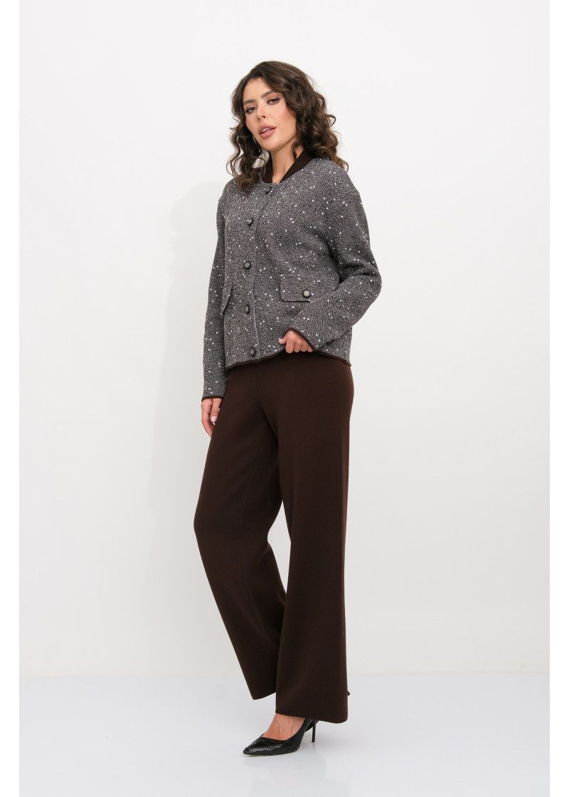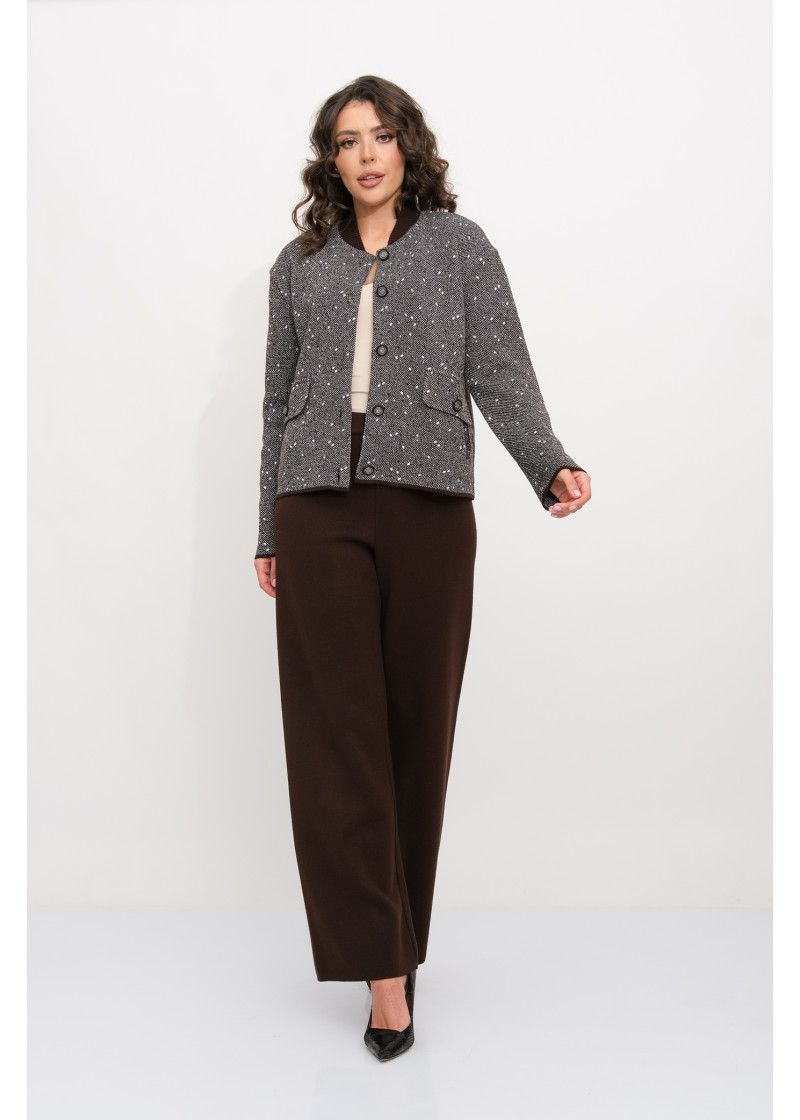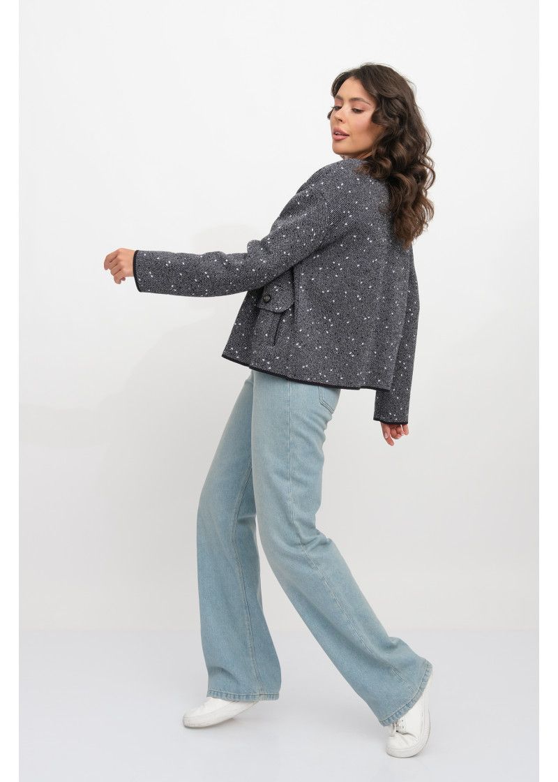 Жакет женский полуприлегающего силуэта с круглой горловиной, отделанной трикотажной полустойкой. Жакет вязанный на пуговицах, выполнен жаккардовым переплетением. Карманы прорезные с боковым входом, оформленные клапаном. Данный жакет позволяет создать свой стиль на любой вкус и настроение: женственный – с платьем, юбкой, балетками или сапогами. Спортивно-повседневный – с джинсами, брюками и кроссовками. Жакет обеспечивает комфорт и стиль одновременно.