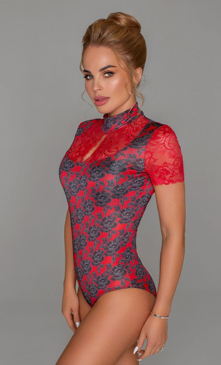 Изделие из эластичного трикотажного полотна с коротким рукавом, воротником-стойкой, имеет застежку внизу.