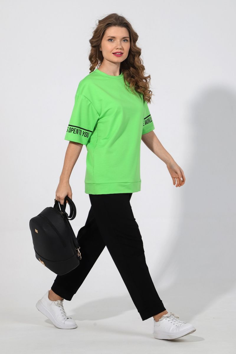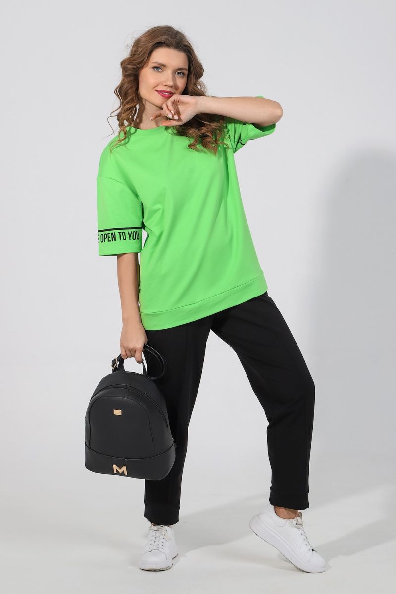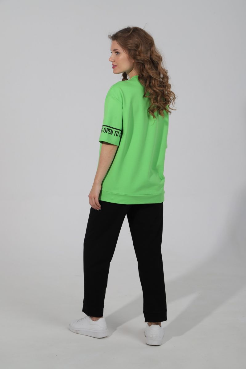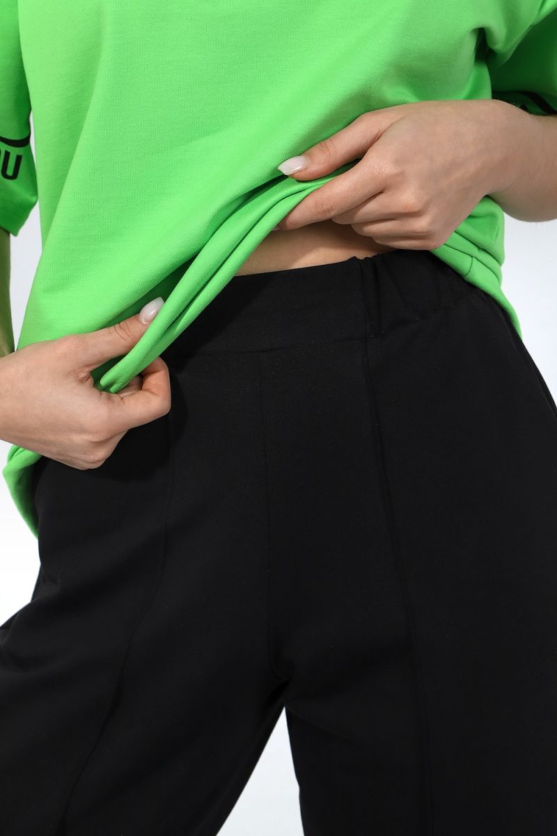Костюм молодежный из трикотажного полотна «футер-двунитка с лайкрой» в комбинации двух контрастных расцветок, состоящий из футболки и брюк.