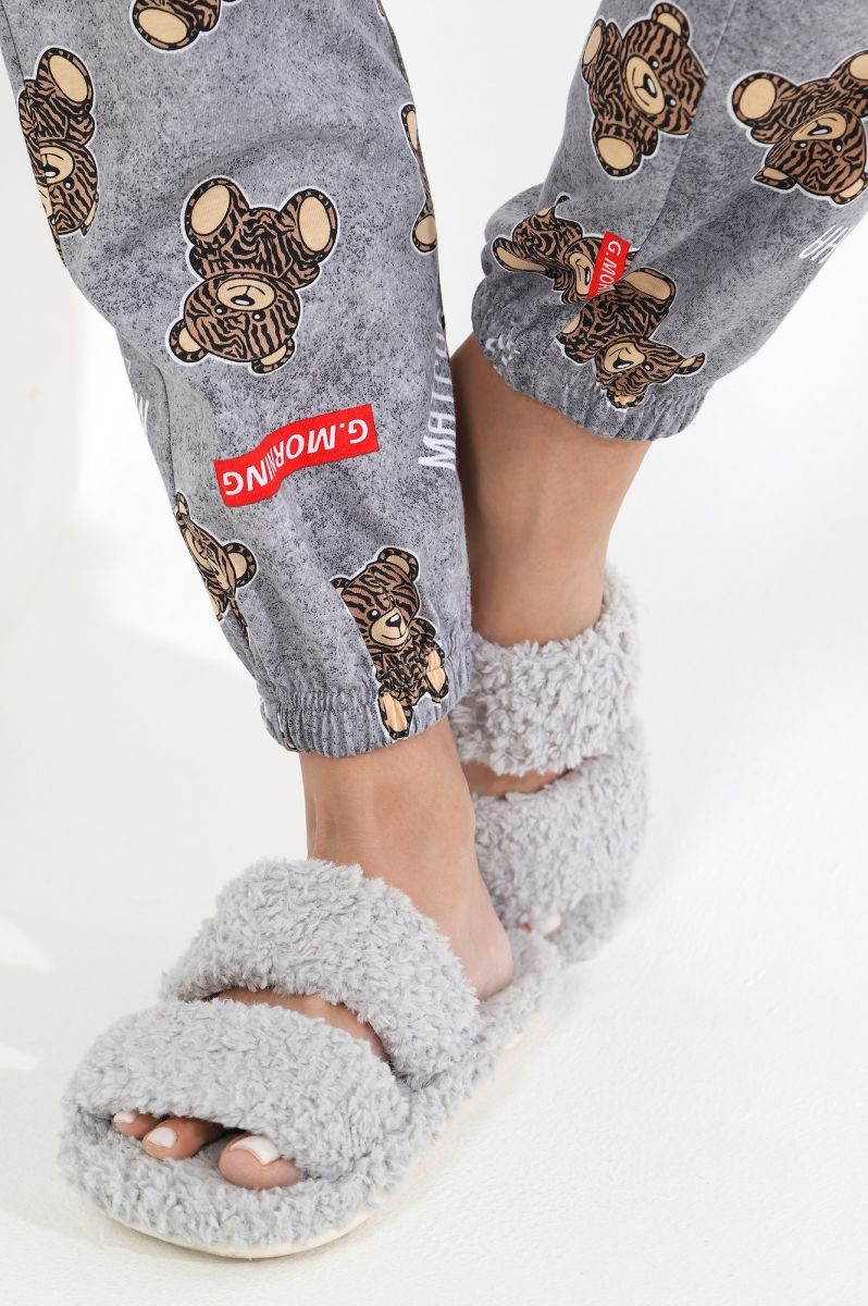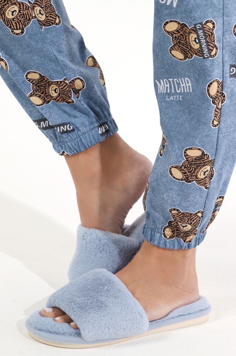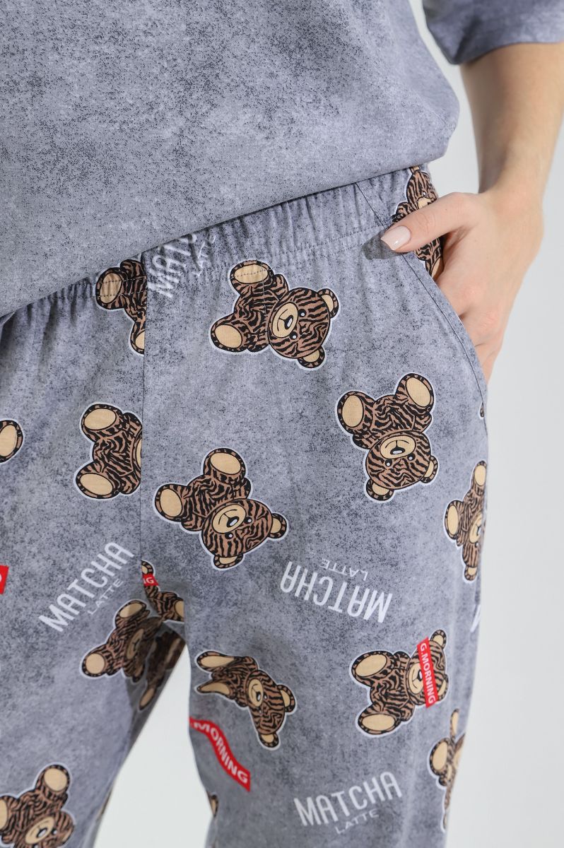 Брюки – свободного покроя, с эластичной тесьмой по талии и нижним срезам, карманами в боковых швах.