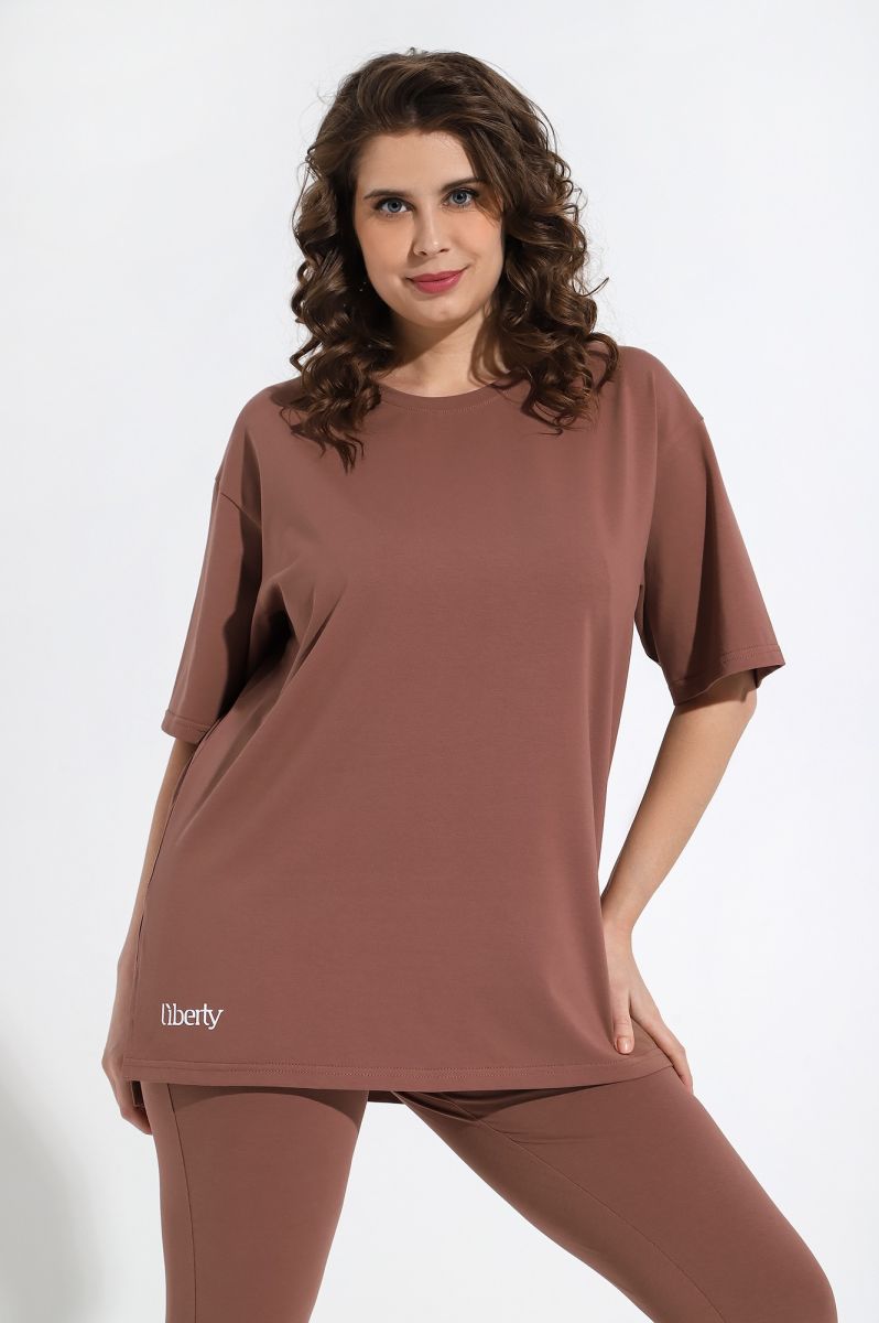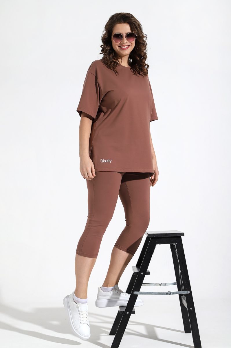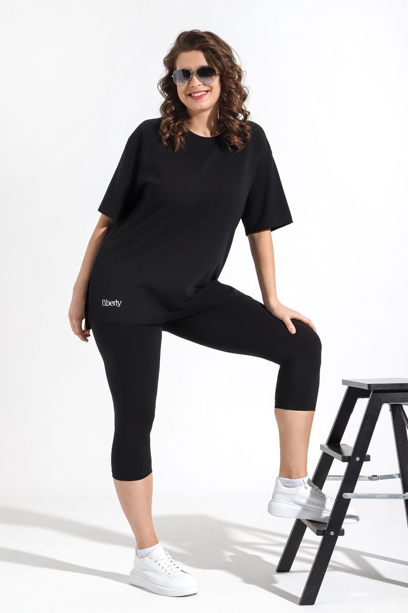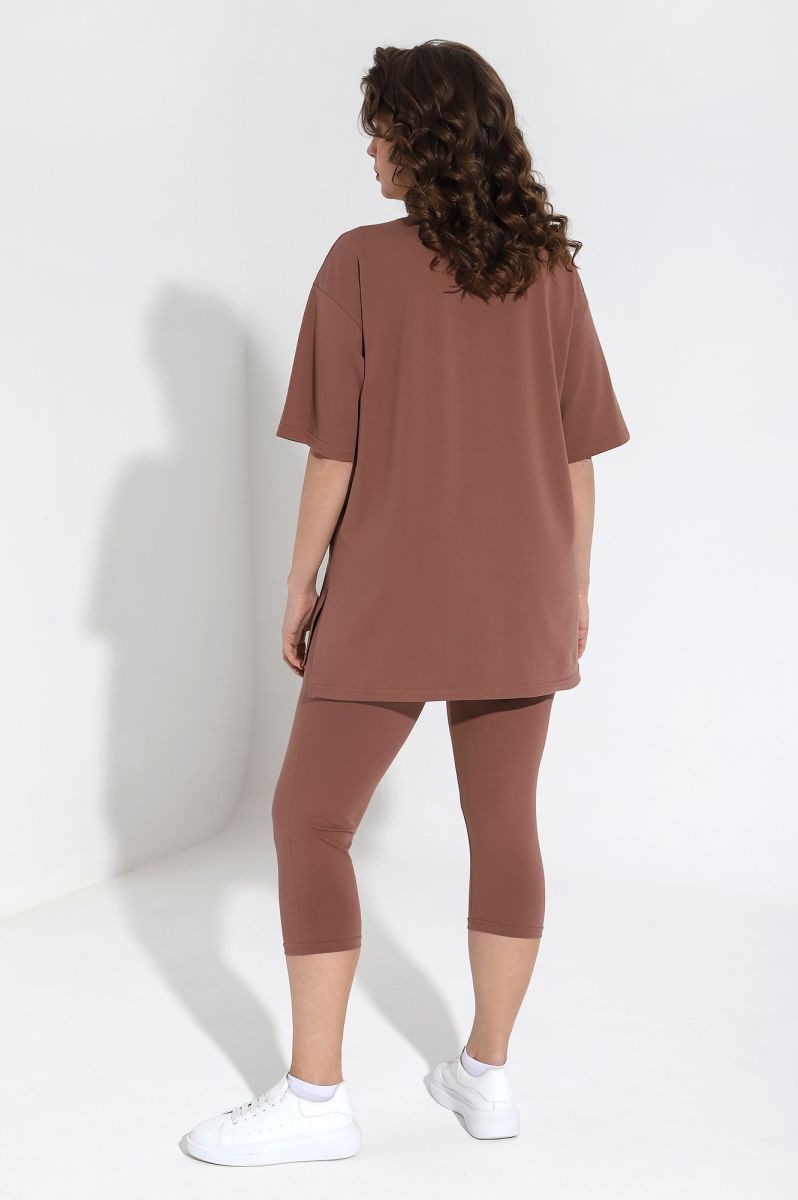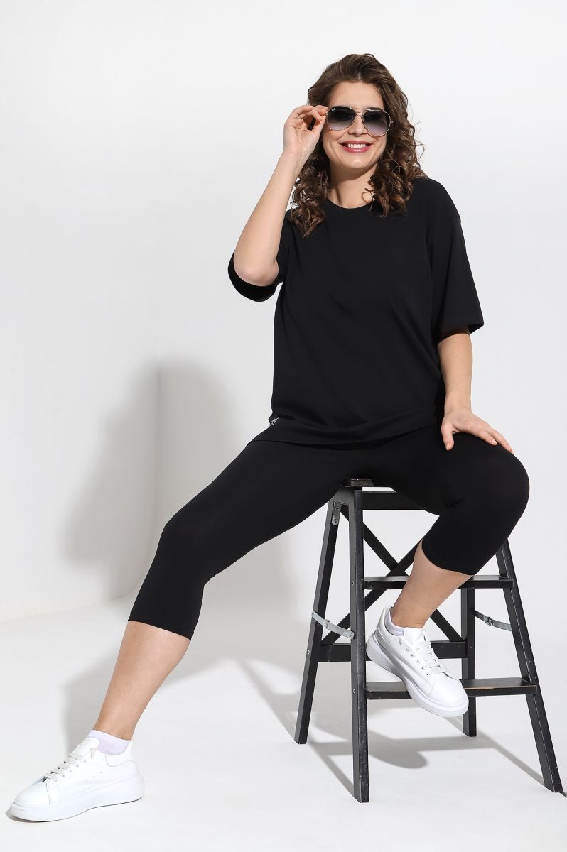 Костюм женский из трикотажного гладкокрашенного полотна «кулирка с лайкрой», состоящий из футболки и бридж.