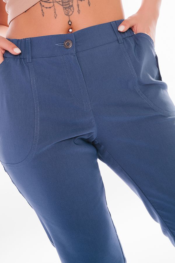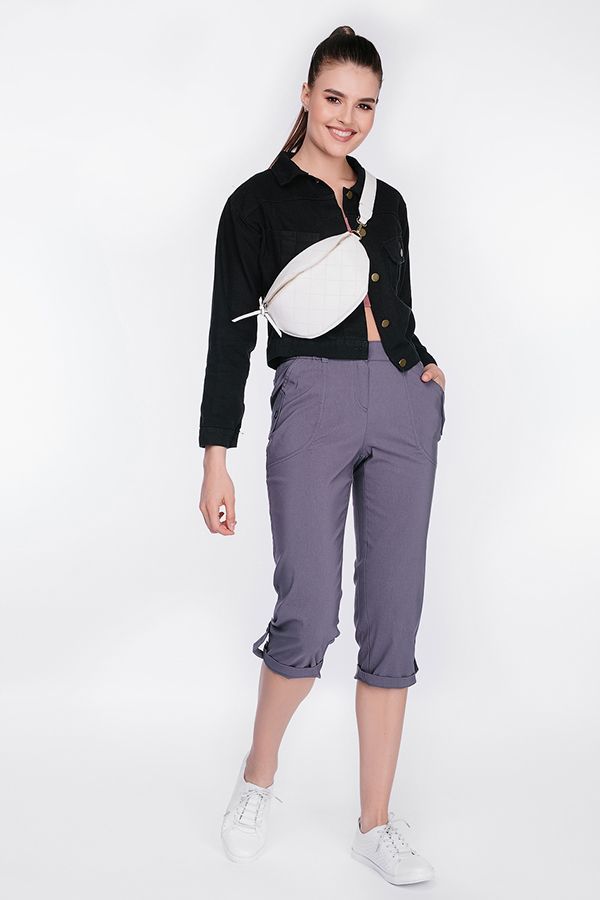 Капри в спортивном стиле. Детали: спереди застежка на молнию и пуговицу, полноценные боковые карманы с оригинальной отделкой. Шлевки. В поясе эластичная лента, которая надежно фиксирует брюки на фигуре. Сзади под оригинальной кокеткой имитация карманов с клапаном. По линии низа регулируемый отворот с патой. Уход за изделием: стирка при t=30. *Числовые параметры соответствуют размеру 44. Длина по внутреннему шву - 51 см. Ширина по линии низа - 19 см. Размер модели на фото: 42. Параметры модели: 86-63-94. Рост модели на фото: 173 см.
