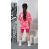 Модный и комфортный костюм для девочки. Футболка свободная, из полотна с набивным рисунком эксклюзивного дизайна, удлиненная, со спущенной линией плеч, по горловине - деталь из рибаны. Бриджи однотонные из хлопкового полотна с лайкрой, прилегающего силуэта, длиной выше колен ("велосипедки") .