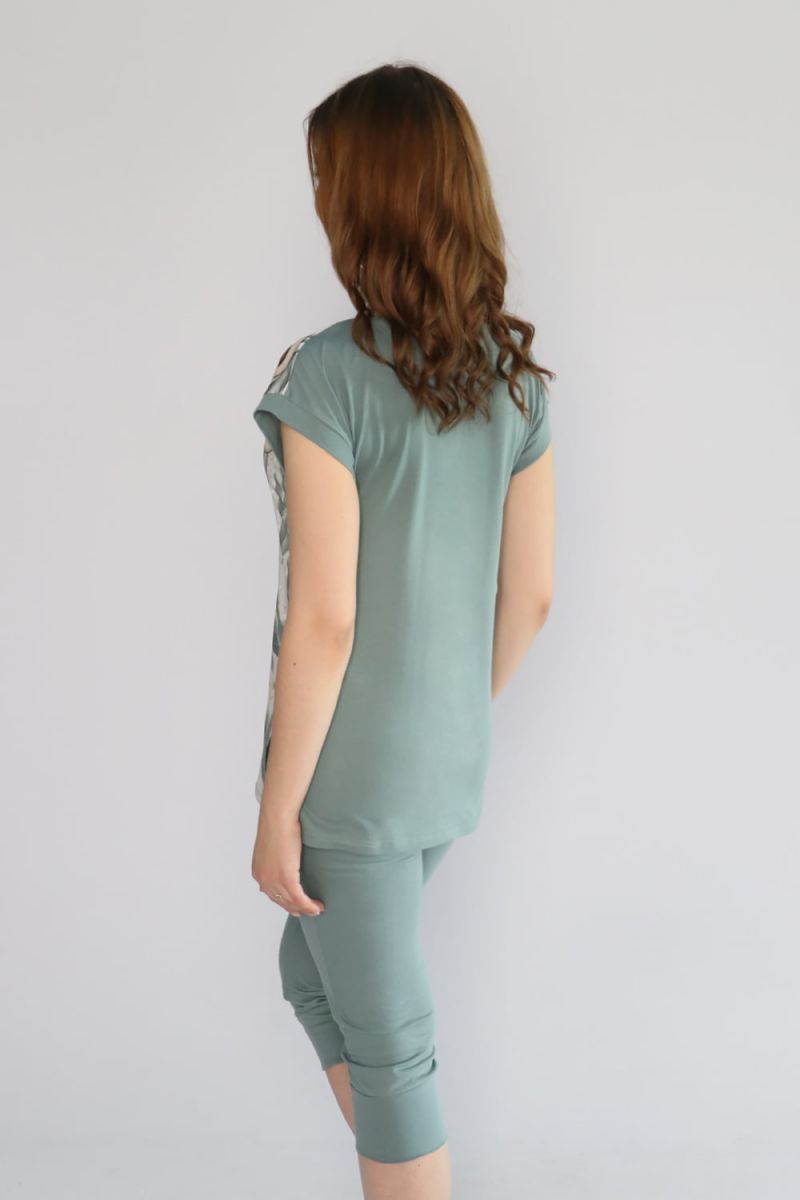 Состав: бриджи: 100% хлопок; футболка: полочка 100% п/э, спинка 100% хлопок