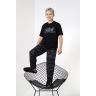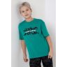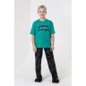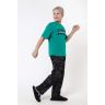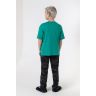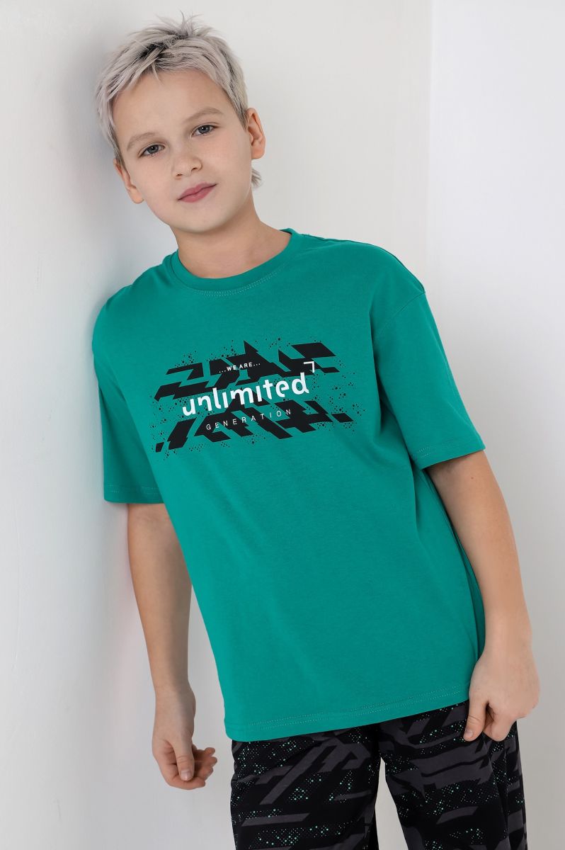 Футболка - из гладкокрашеного полотна с принтом на детали переда, классического покроя, с короткими втачнвыми рукавами, удлиненными плечевыми швами и горловиной овальной формы, обработанной втачной планкой.