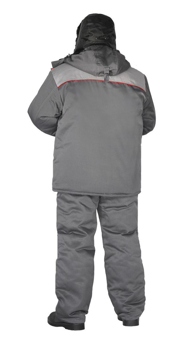 Куртка с центральной застежкой на молнию и утепленным ветрозащитным клапаном на липучках. Нагрудные накладные карманы с утепленными клапанами на липучке. Напротив каждой липучки вставлен красный флажок. Кокетки полочек и спинки выделены красным кантом. В рукавах - трикотажные напульсники. Внутренняя кулиса по линии талии для регулировки ширины куртки со шнуром-резинкой и фиксаторами. Накладной карман на липучке со стороны подкладки левой полочки. Отстегивающийся капюшон на молнии с лицевой кулисой со шнуром-резинкой и фиксаторами и хлястиком на полукольцах для регулировки высоты капюшона.