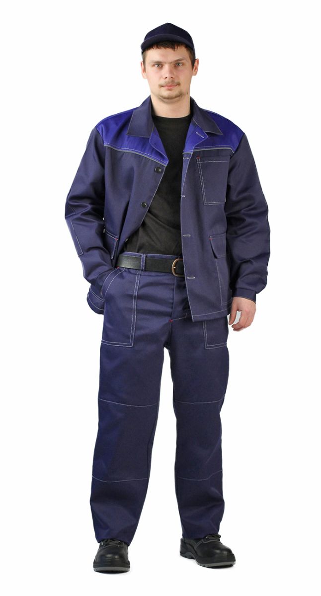 Куртка и брюки. - куртка удлиненная - с центральной застежкой на пуговицы. - контрастными отделочными строчками - кант СВ по линии кокетки. - с двумя нижними и двумя верхним накладными карманами. - локтевые сгибы усилены налокотниками. Брюки - на поясе со шлевками, - гульфик на пуговицах. - с верхними накладными карманами - с наколенниками.