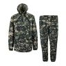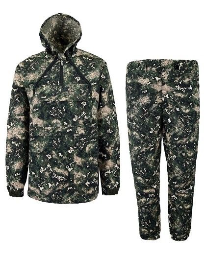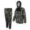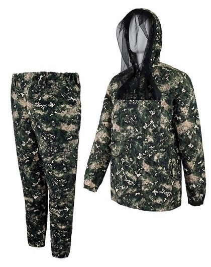 Камуфляжный антимоскитный костюм с ловушками выполнен из прочной, износостойкой ткани -Твил. Ткань имеет водоотталкивающую пропитку. Костюм предназначен для защиты от кровососущих насекомых и имеет антимоскитную сетку. Крой костюма – свободный. Костюм собирается только армированной нитью.