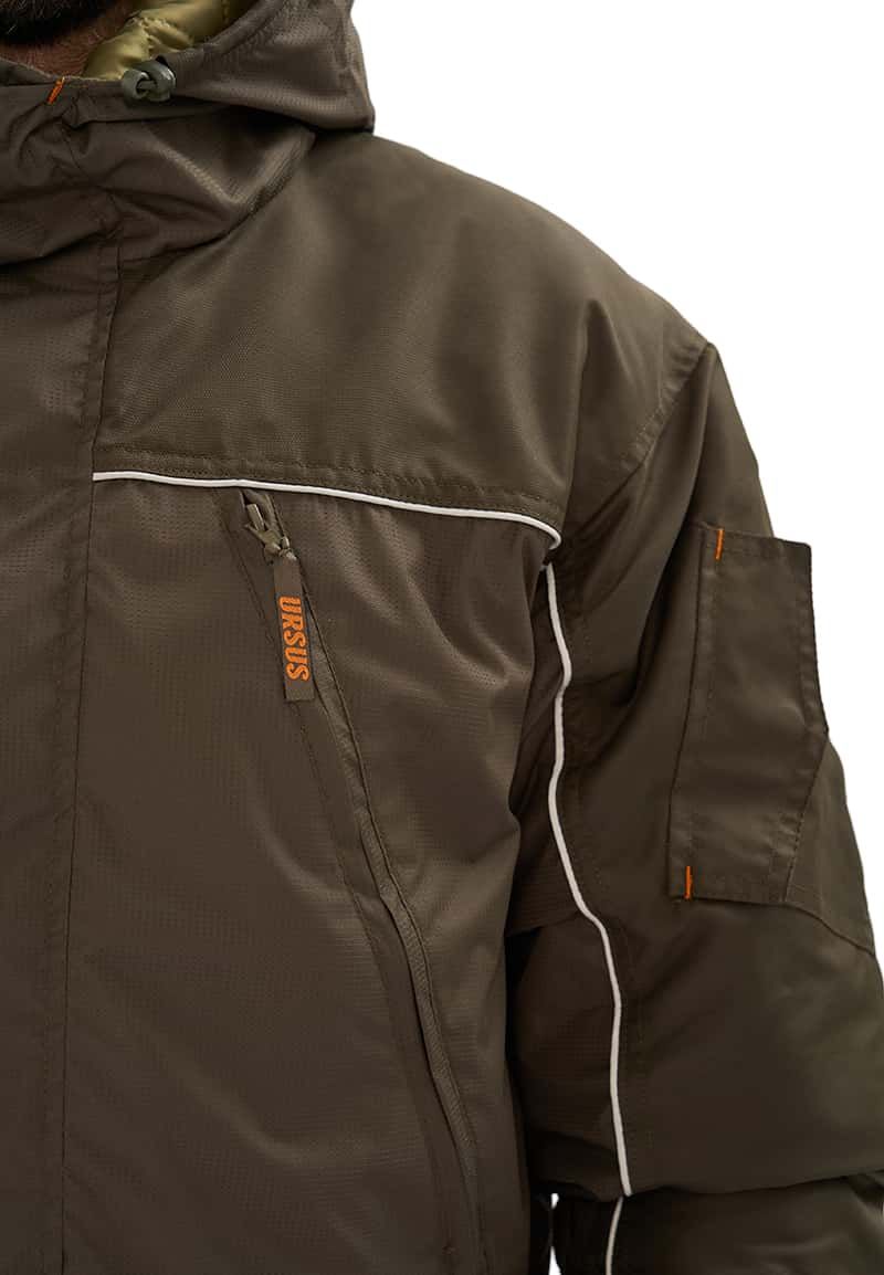 - капюшон втачной, на подкладке из термостежки, с двумя кулисками для регулировки капюшона по объему и высоте