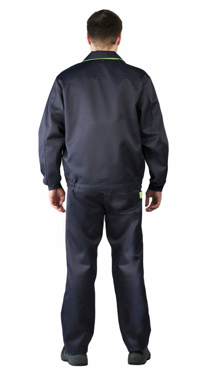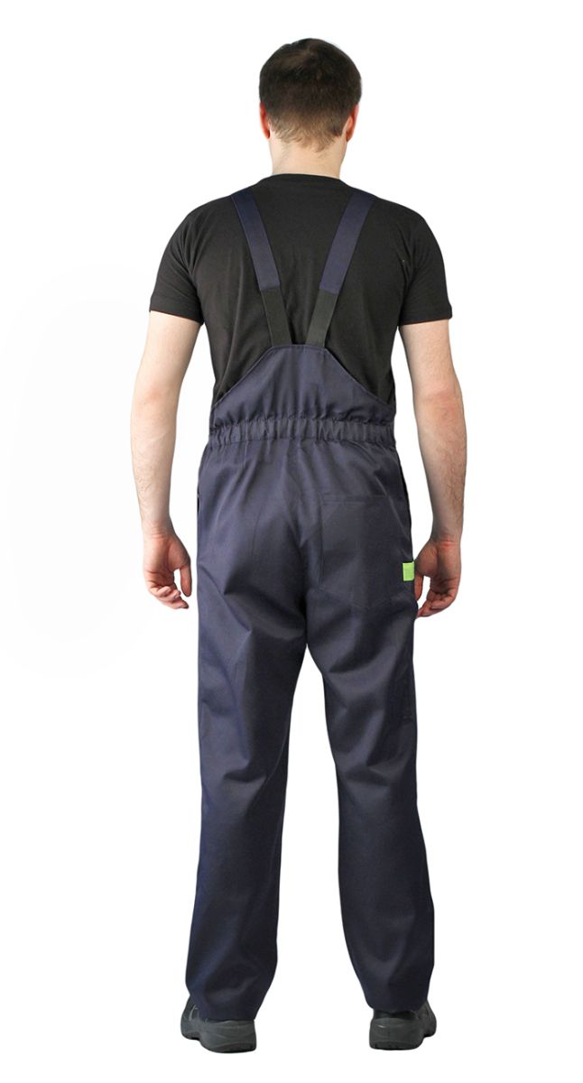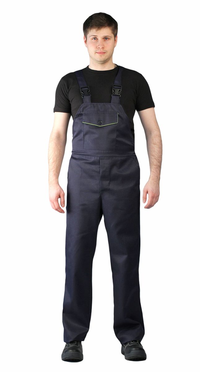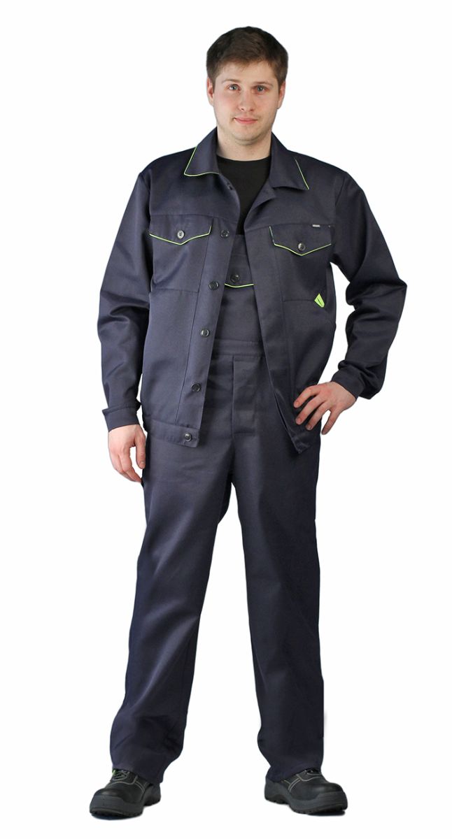 Куртка и полукомбинезон. Куртка: - укороченная на поясе с эластичной лентой, - супатная застежка на пуговицы, - отложной воротник - нижние накладные и верхние накладные карманы с клапанами на пуговицах, - по воротнику и клапанам верхних карманов проложен контрастный кант Полукомбинезон: - пояс на эластичной ленте, - гульфик на пуговицах, боковая застежка на пуговицах, - верхние и задний накладные карманы, и боковой карман под инструмент, - грудка с накладным карманом, - спинка с регулируемыми бретелями на эластичной ленте,