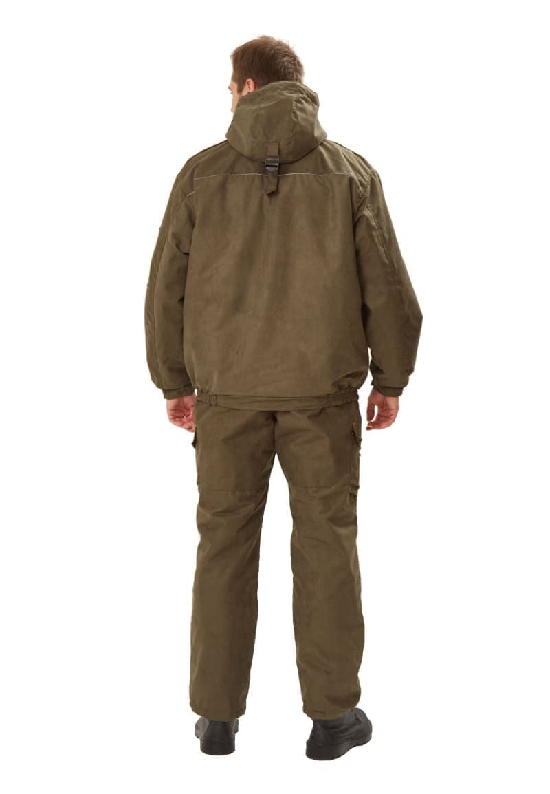 - капюшон втачной утепленный с регулируемой кулисой с помощью резинки с фиксаторами по лицевому вырезу и хлястиками с пряжкой на средней части