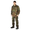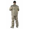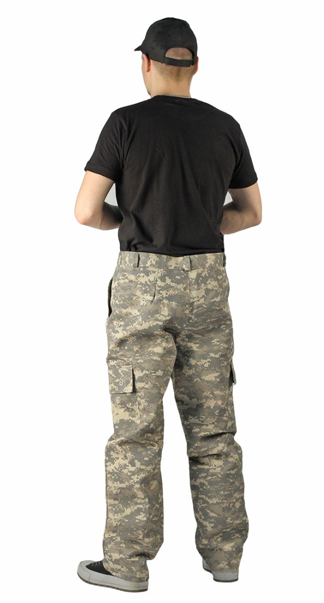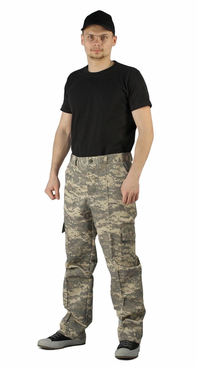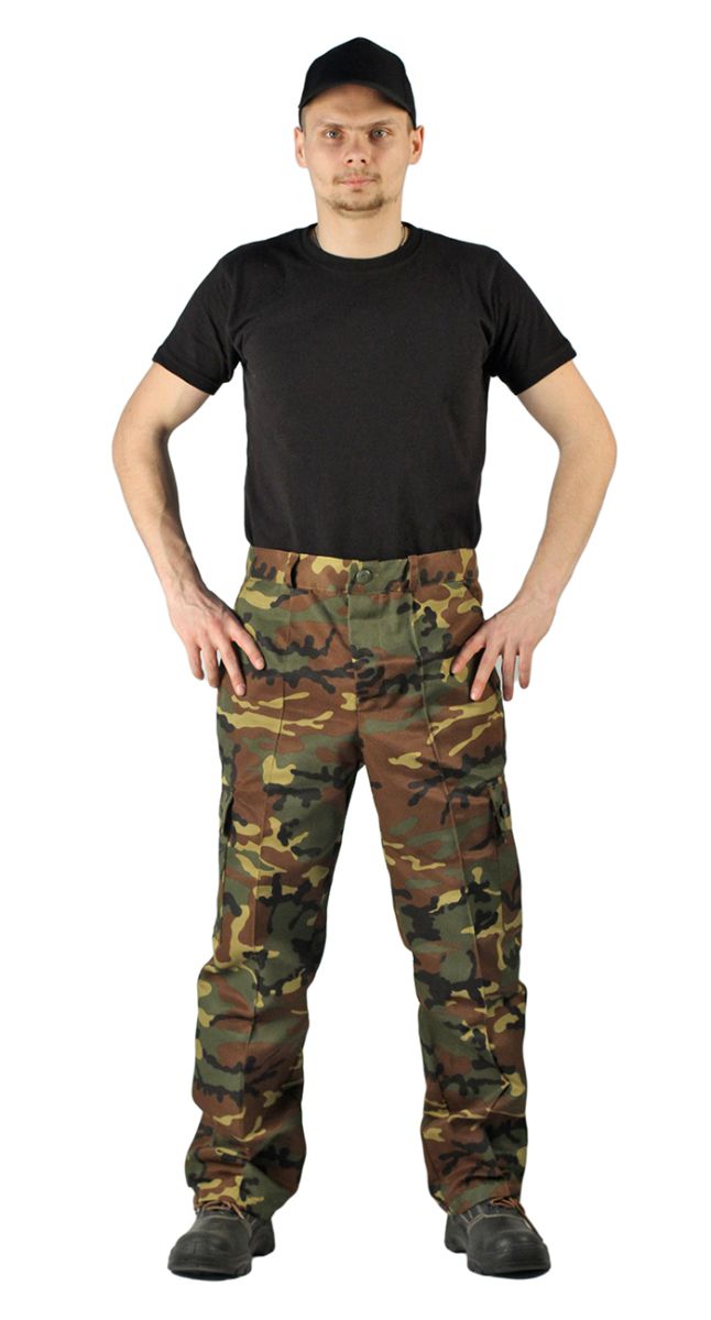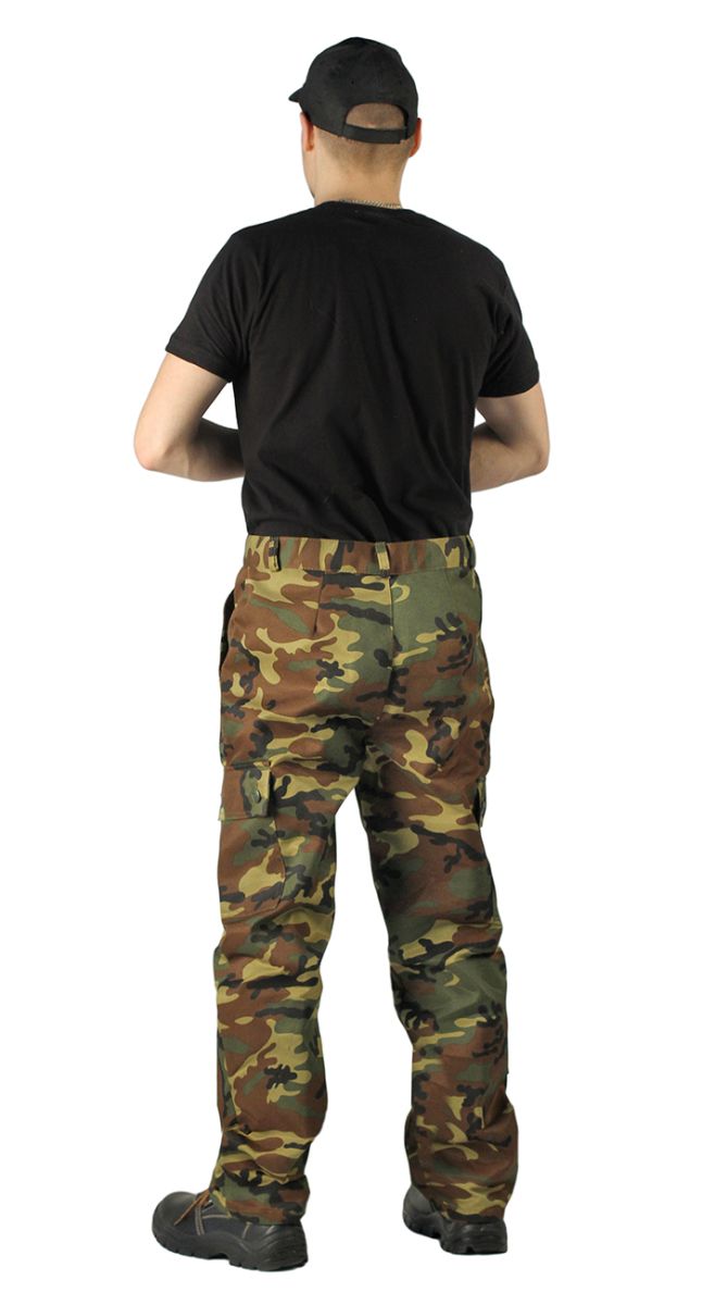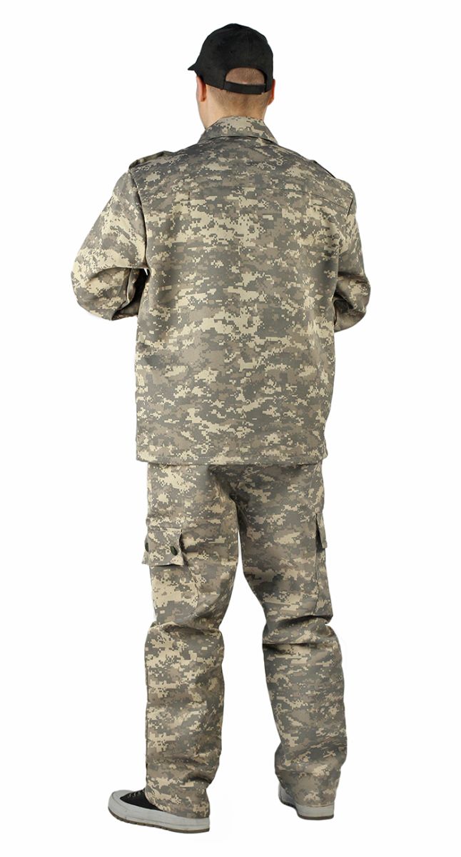 Костюм мужской, летний, прямого силуэта, состоит из куртки и брюк. Куртка: - центральная супатная застежка на пуговицы; - отложной воротник; - декоративные погоны с петлей и пуговицей; - нагрудные и нижние накладные карманы с защитным клапаном, застегивающимся на петлю и пуговицу; - рукав на притачной манжете с застежкой на пуговицу; Брюки: - карманы с отрезным бочком и объемные боковые накладные карманы с защитным клапаном, застегивающимся на петлю и пуговицу; - центральная застежка гульфик на петли и пуговицы; - притачной пояс со шлевками под ремень; - передняя часть брюк выделена застроченными стрелками.