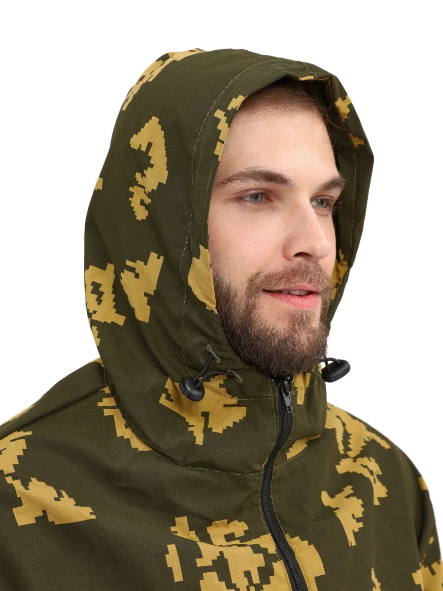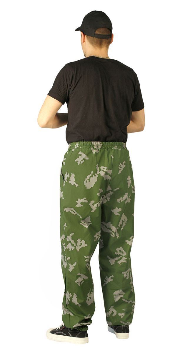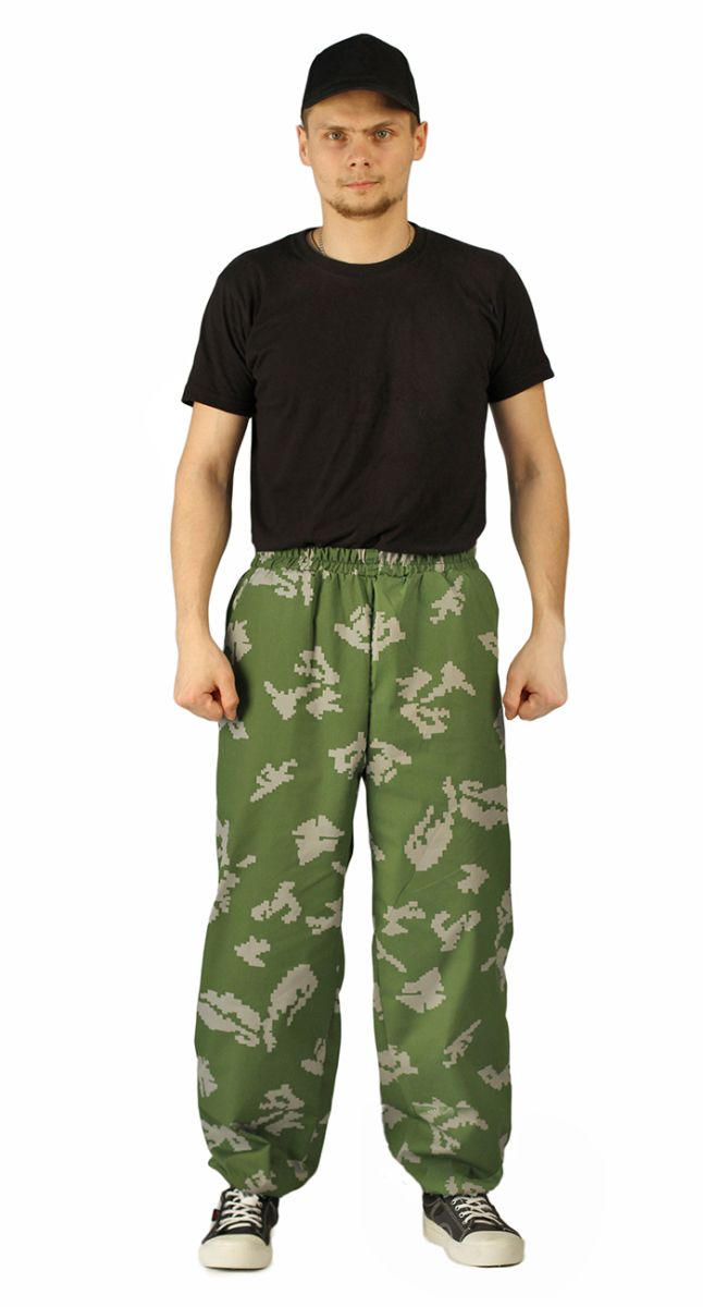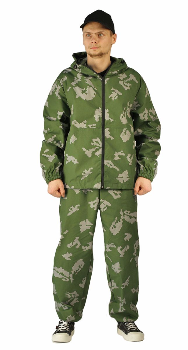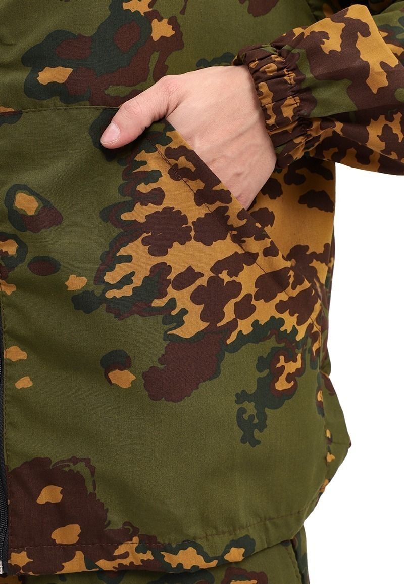 Костюм “Маскхалат” используется в качестве маскировочного костюма, состоящего из куртки и брюк. Куртка - центральная бортовая застежка на молнию - нижние фигурные накладные карманы с наклонным входом - спинка прямая, цельнокроеная - рукава прямые, низ собран с помощью эластичной резинки - по низу куртки расположена кулиса, утяжкой служит шляпная резинка с фиксаторами, проходящая через держатель шнура, расположенного в боковом шве куртки - капюшон втачной с кулисой по лицевому срезу, утяжкой служит шляпная резинка с фиксаторами Брюки: - прямые на притачном поясе, собранном фиксированной эластичной резинкой - в верхней части расположены карманы, с отрезным бочком - низ брюк собран фиксированной эластичной резинкой