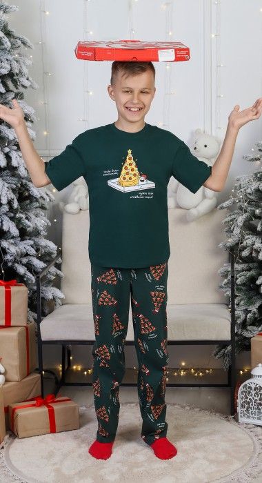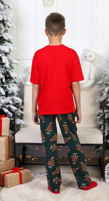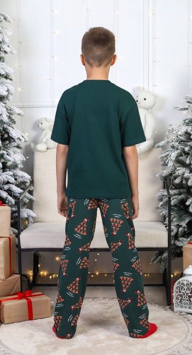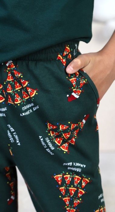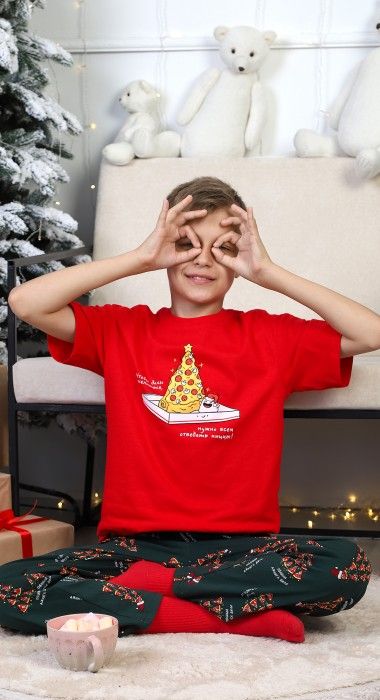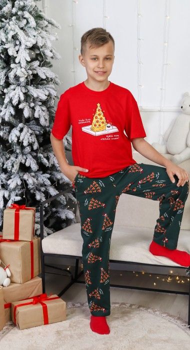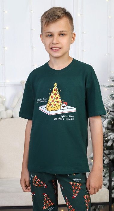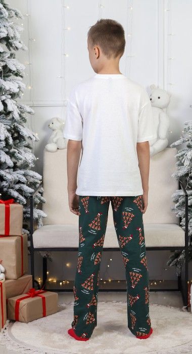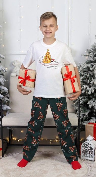 Костюм для мальчика. Футболка с принтом; модель свободная, со спущенной линией плеч. Брюки из полотна эксклюзивного дизайна, прямые, с боковыми карманами, на притачном поясе с отстроченной эластичной тесьмой.