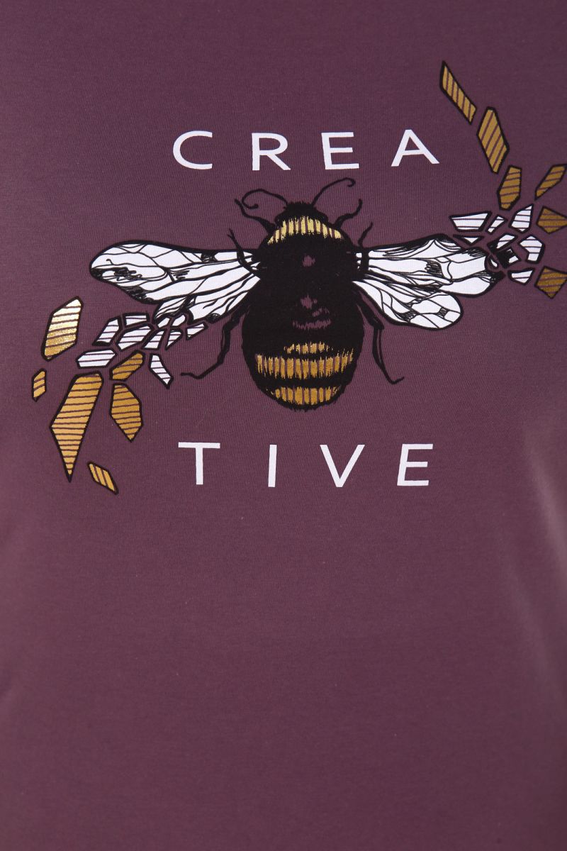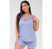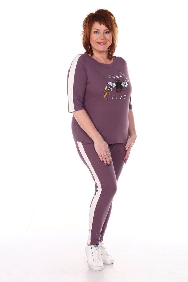 Костюм выполнен из хлопкового волокна. Очень удобный и комфортный. Футболка свободного силуэта и длиной рукава ¾ и модным принтом. Брюки полуприлегающего силуэта с карманами и притачным поясом. Контрастные лампасы, как выраженный элемент на футболке и брюках, зрительно стройнят фигуру.