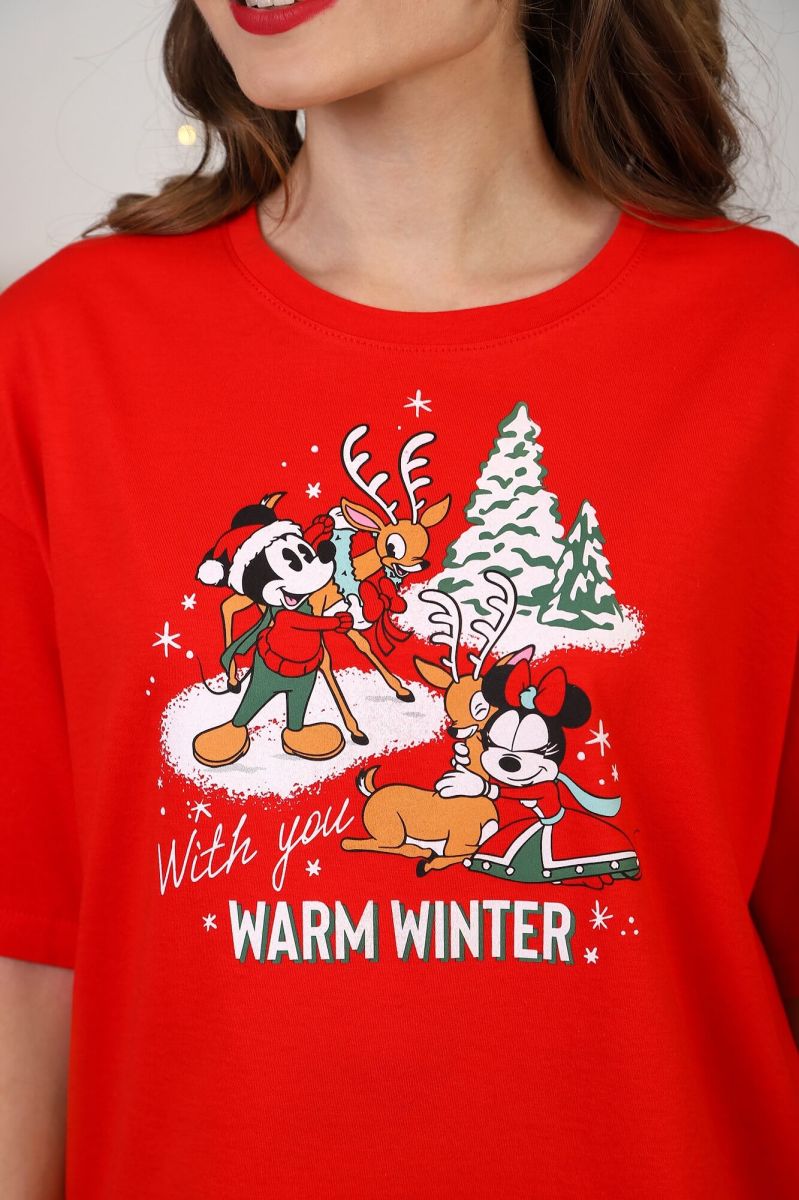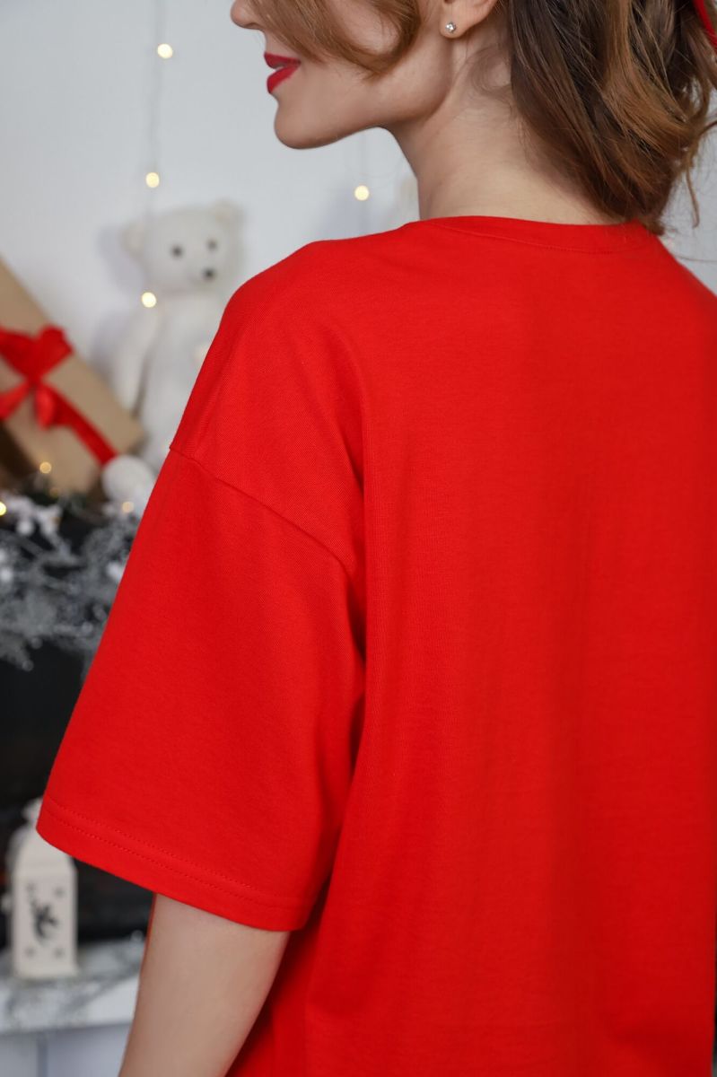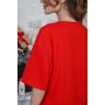 Футболка - из гладкокрашенного полотна, классического покроя, с короткими втачными рукавами, горловиной овальной формы и принтом на полочке, выполненным в технике «шелкографии». Горловина обработана притачной бейкой из основного материала.