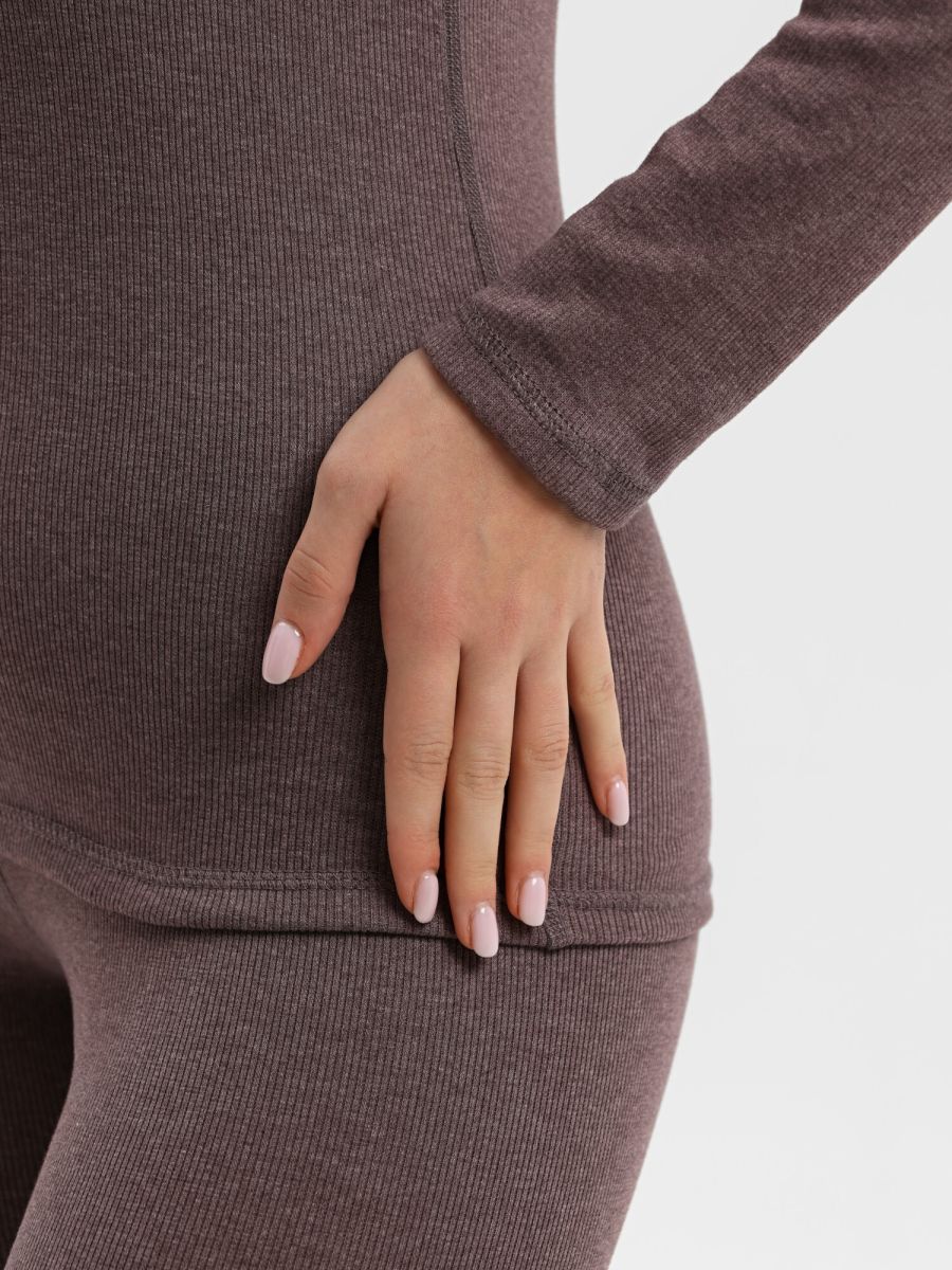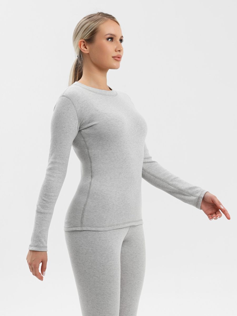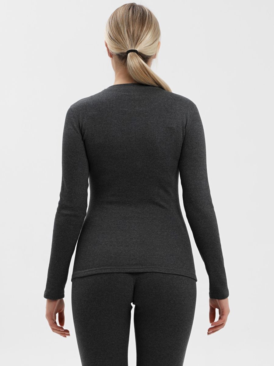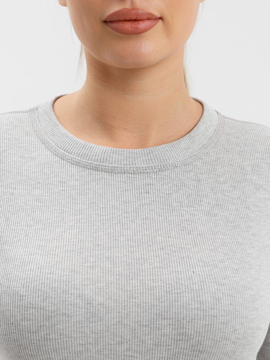 Футболка – прилегающего силуэта, с длинными втачными рукавами, горловиной овальной формы, обработанной втачной планкой из основного материала. Подгибка низа изделия и рукавов, шва втачивания планки в горловину обработаны пяти ниточной строчкой в цвет основного материала.