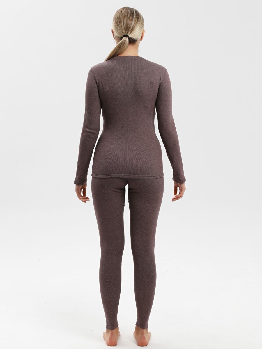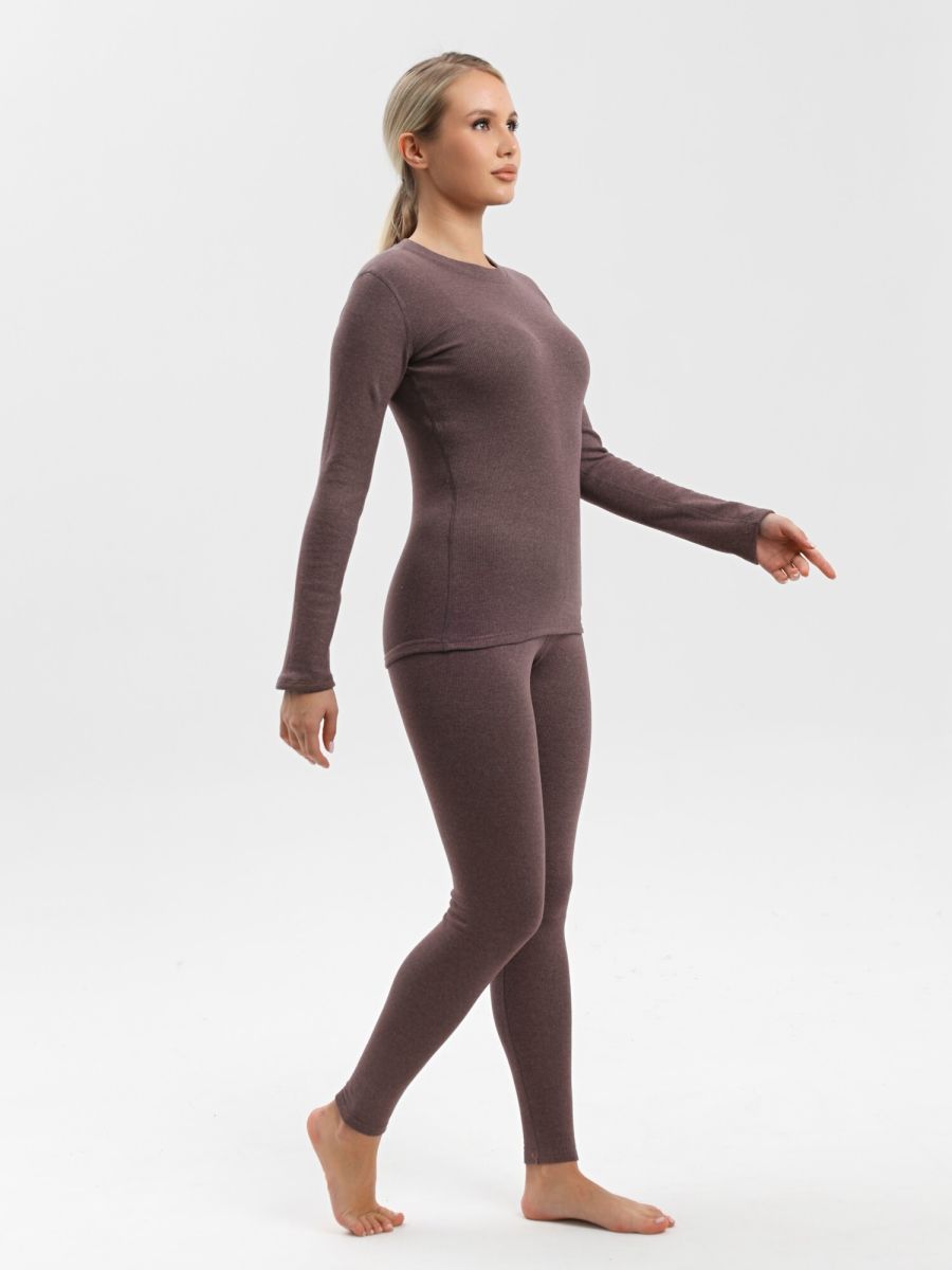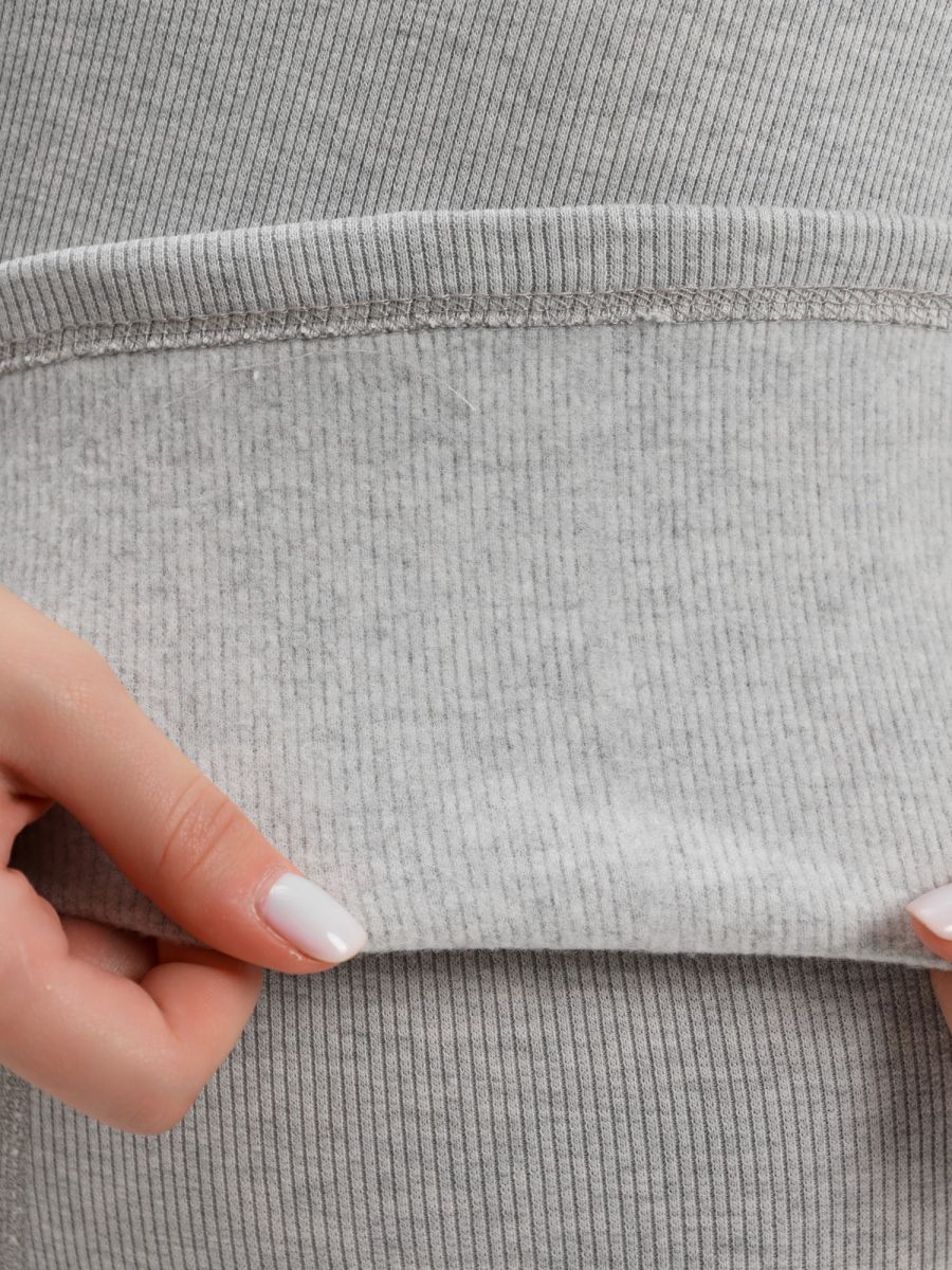 Брюки – длинные, прилегающего силуэта, с эластичной тесьмой по талии. Подгибка верхнего и нижних срезов обработаны пяти ниточной строчкой в цвет основного материала.