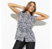 Однотонная футболка со слегка спущенной линией плеч, V-образным вырезом горловины, с принтом.