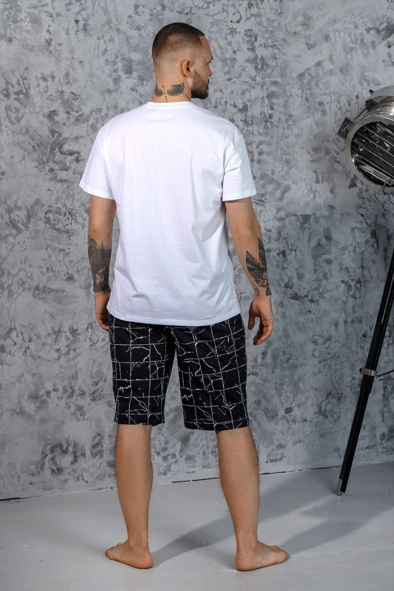 Костюм мужской из хлопчатобумажных трикотажных полотен кулирного переплетения.