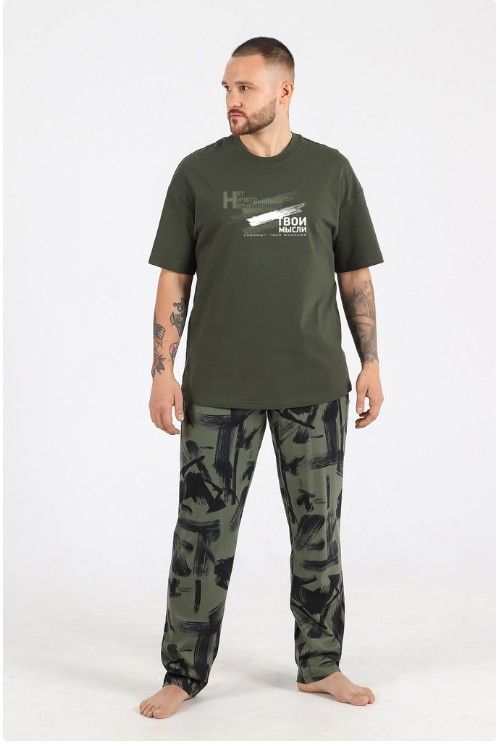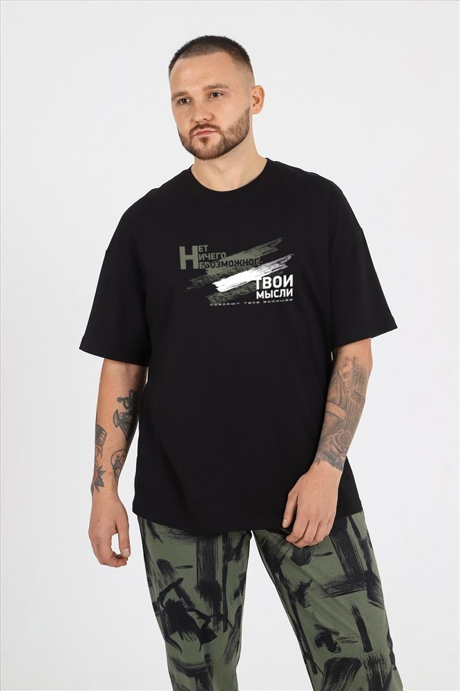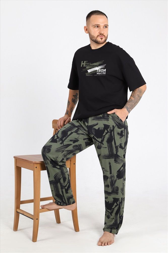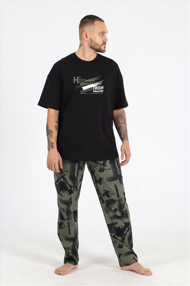 Костюм мужской из трикотажного полотна "кулирка", состоящий из футболки и брюк.