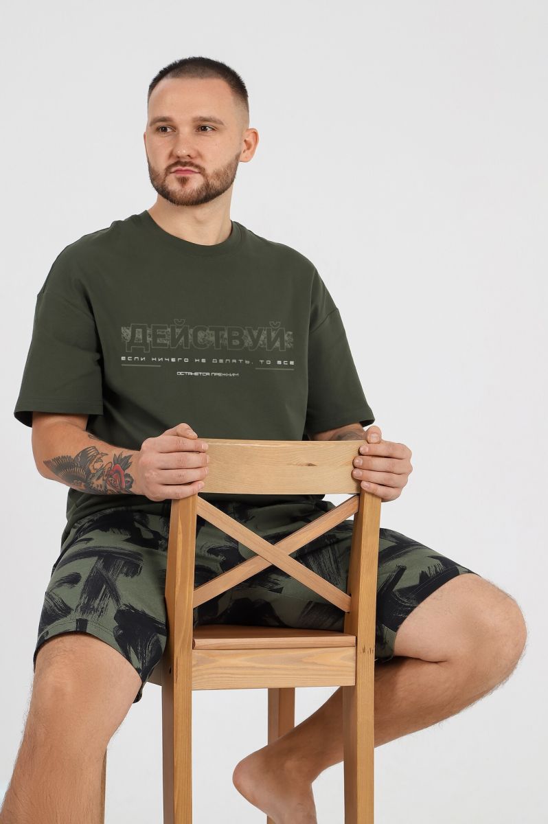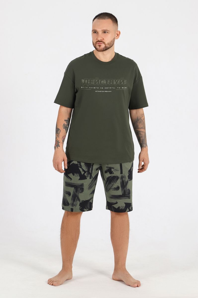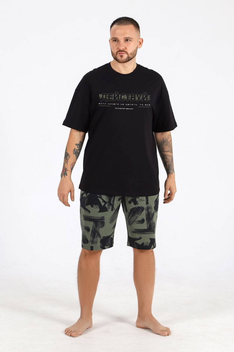 Костюм мужской из трикотажного полотна "кулирка", состоящий из футболки и шорт.