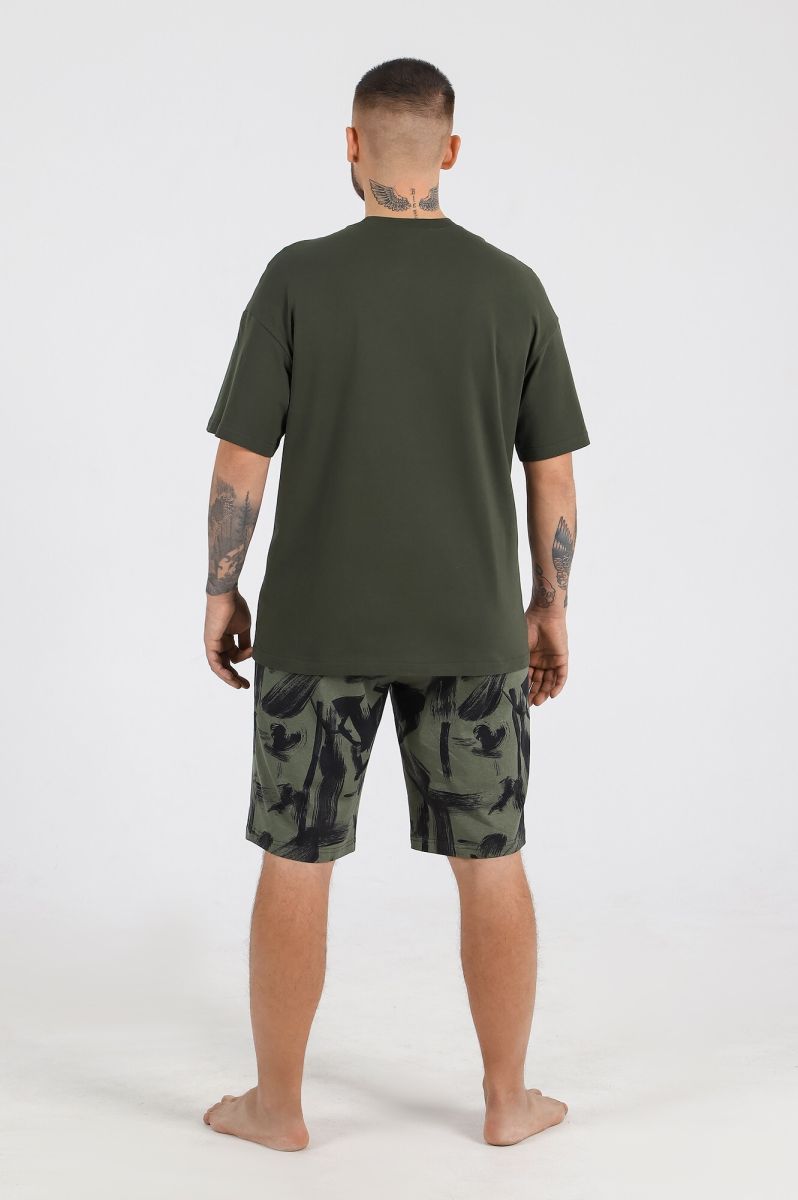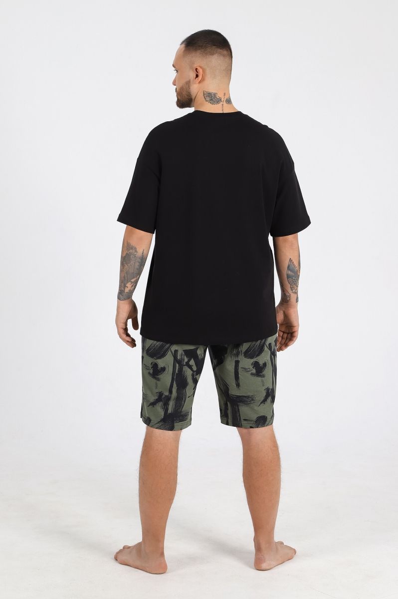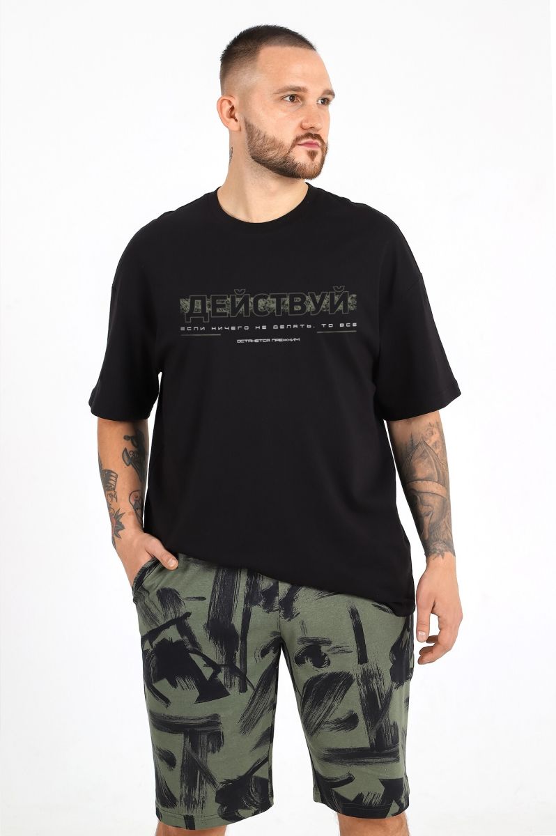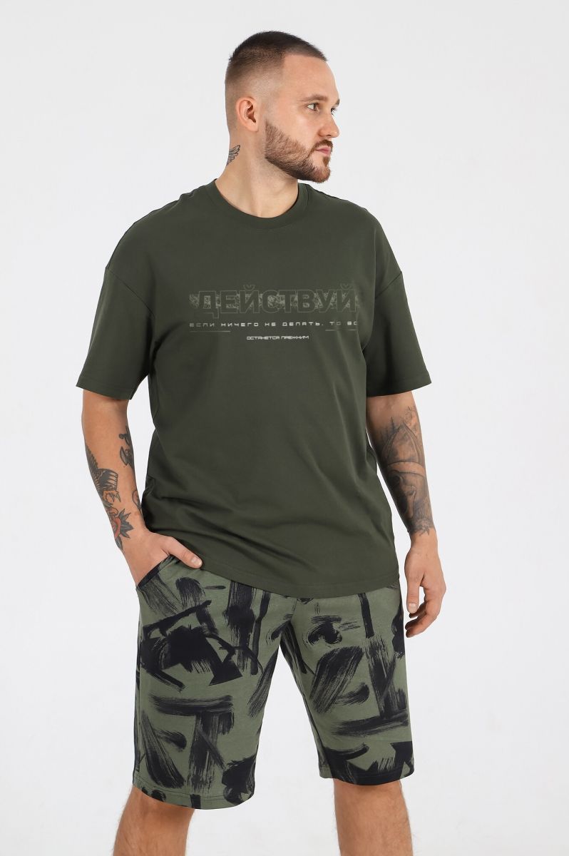 Костюм мужской из трикотажного полотна "кулирка", состоящий из футболки и шорт.