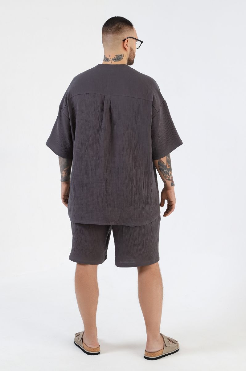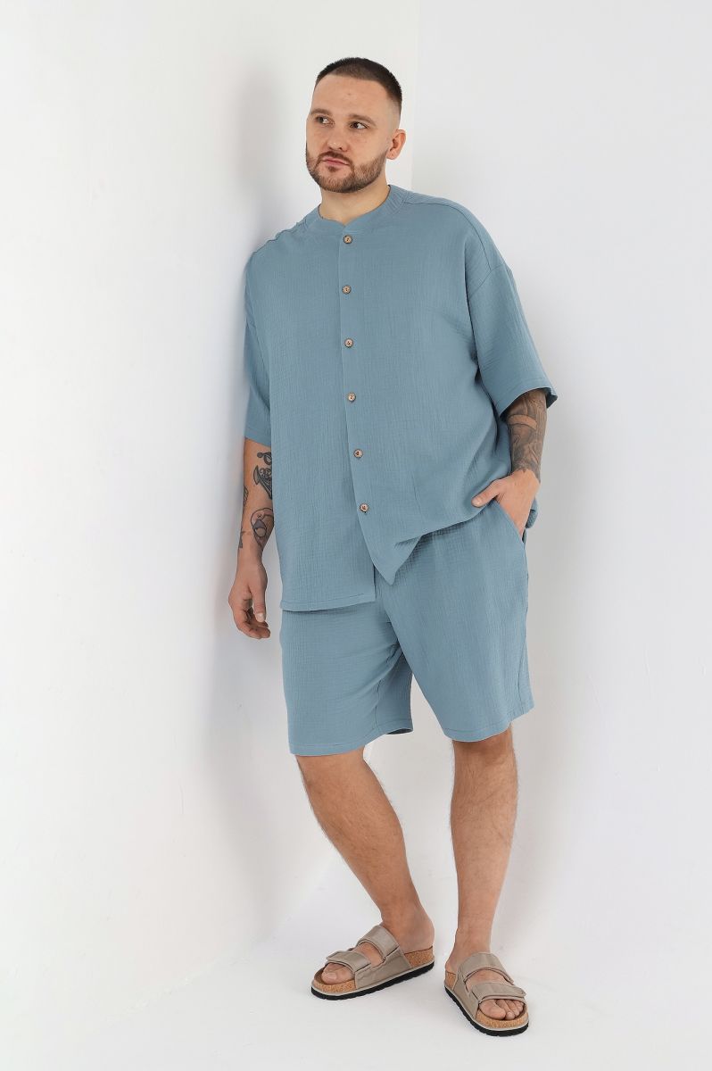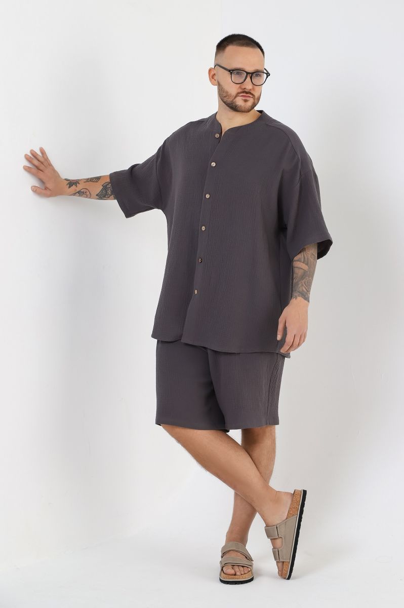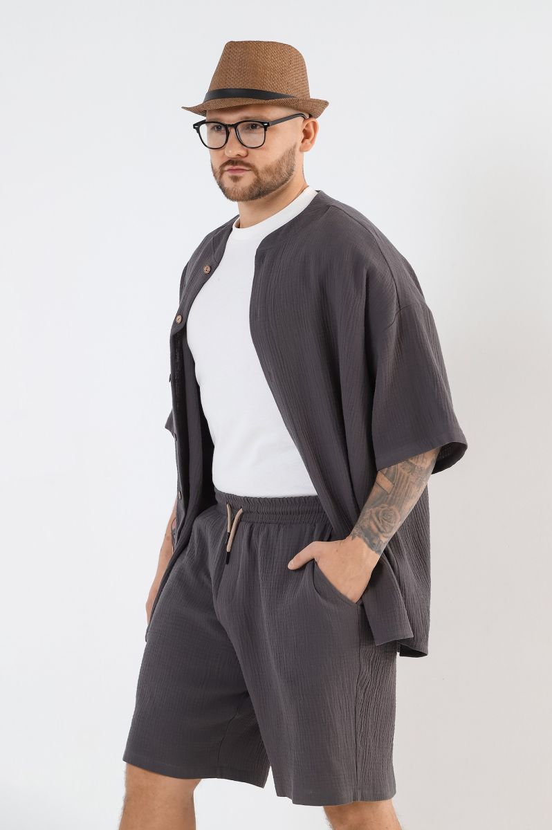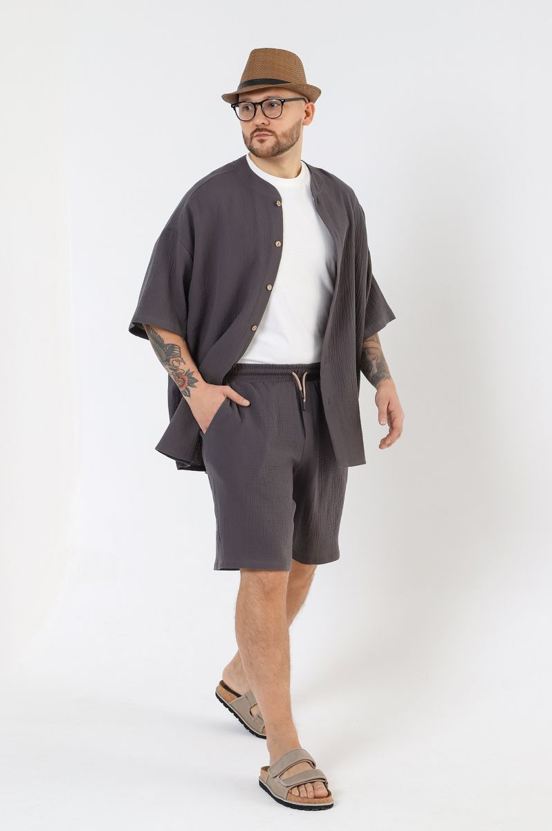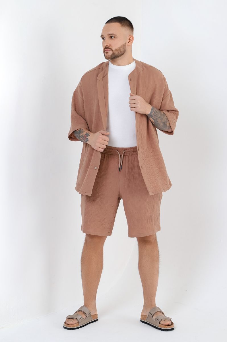 Костюм мужской, свободный, из фактурного трикотажа, состоящий из сорочки и шорт.