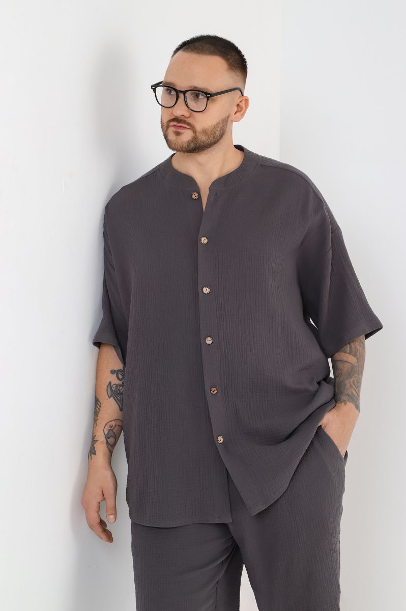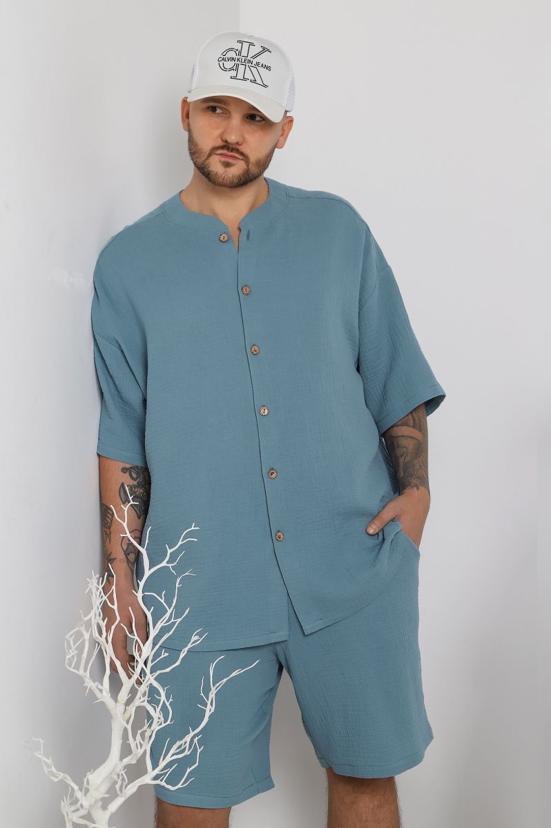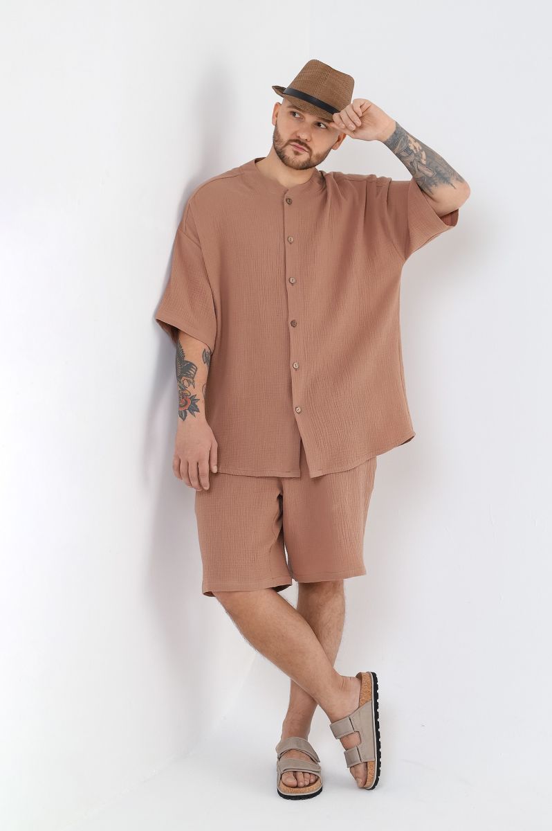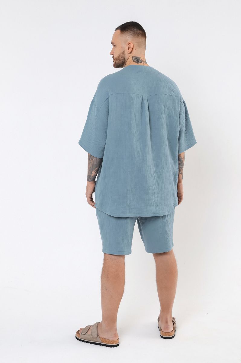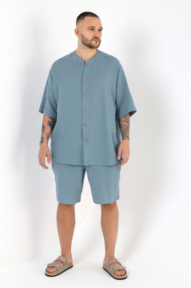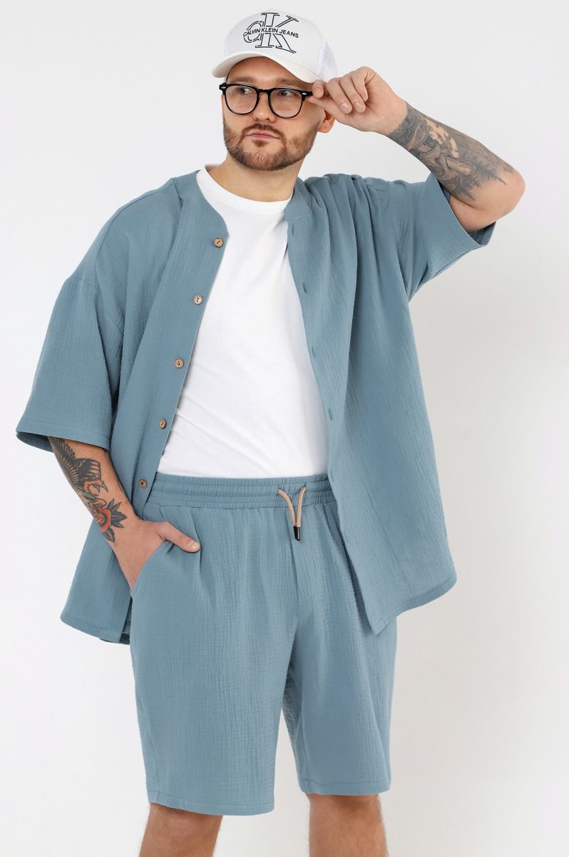 Костюм мужской, свободный, из фактурного трикотажа, состоящий из сорочки и шорт.
