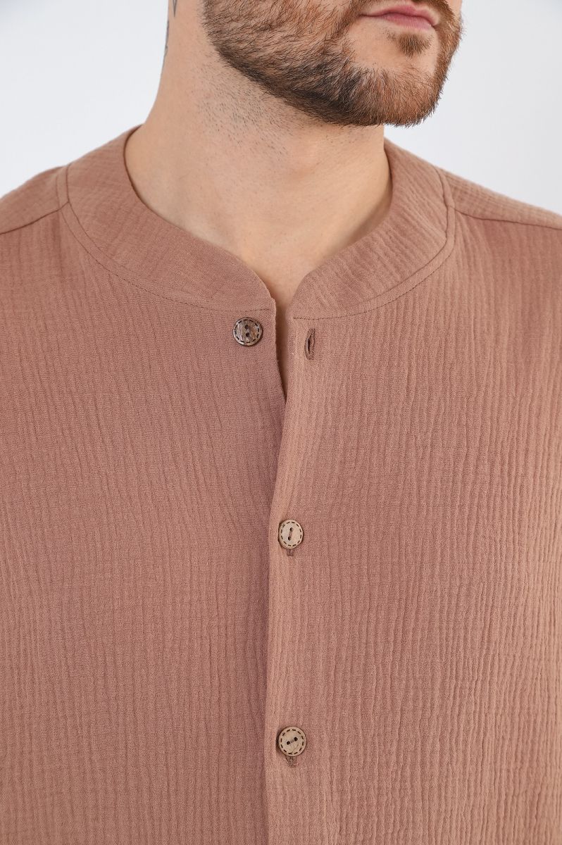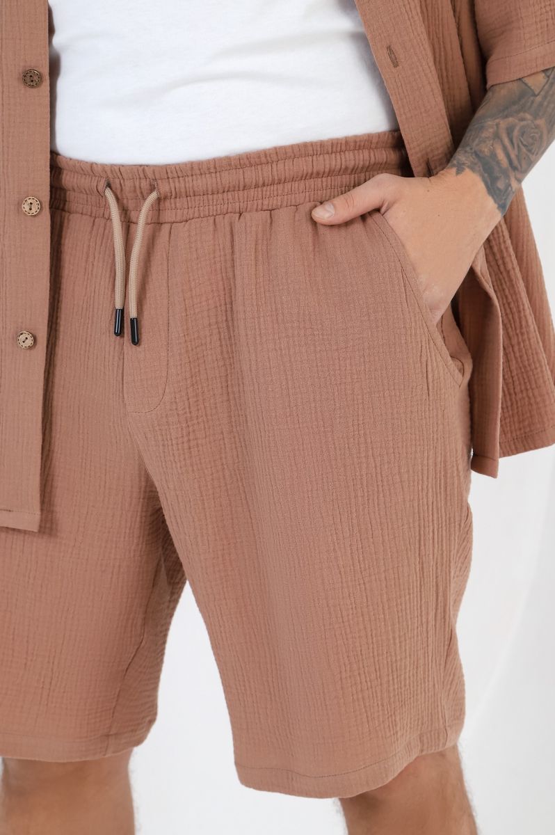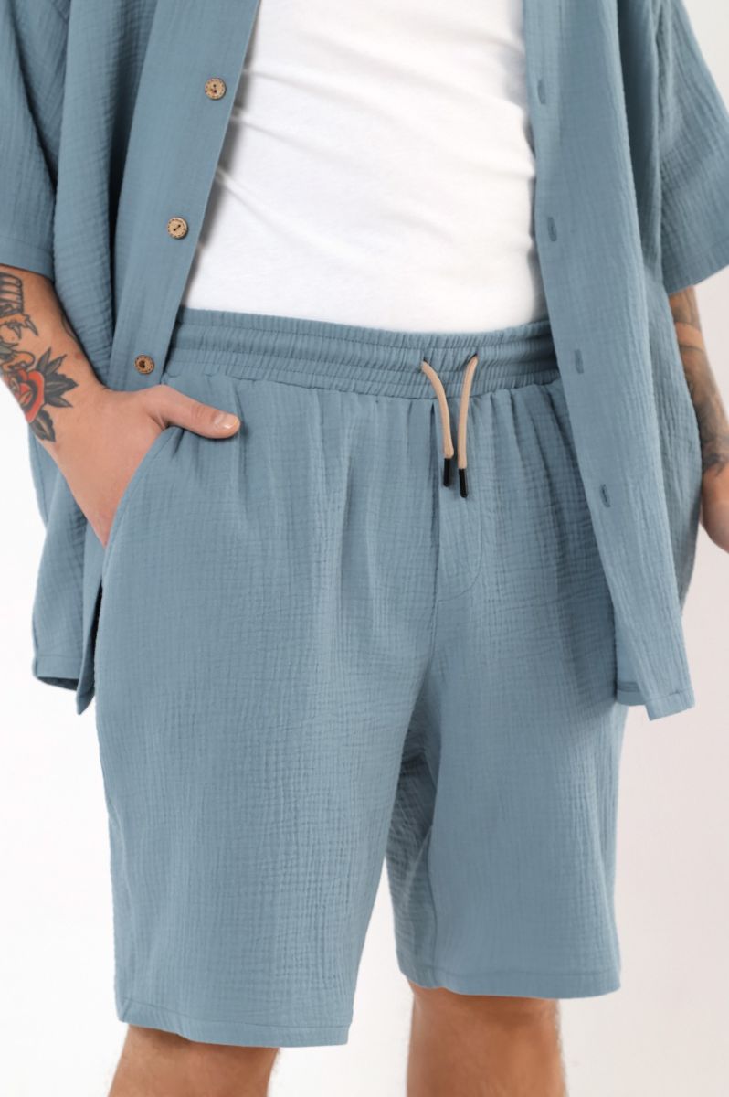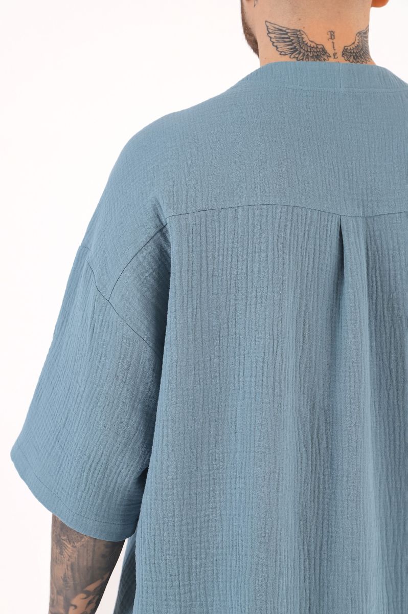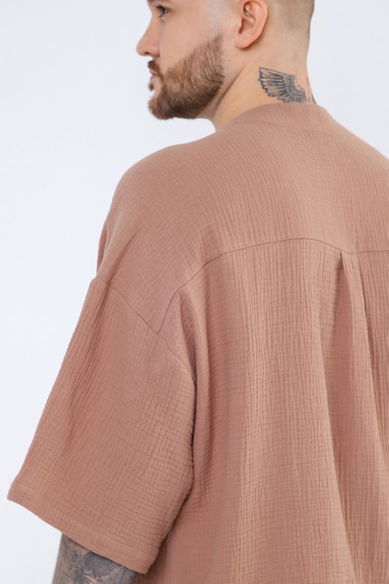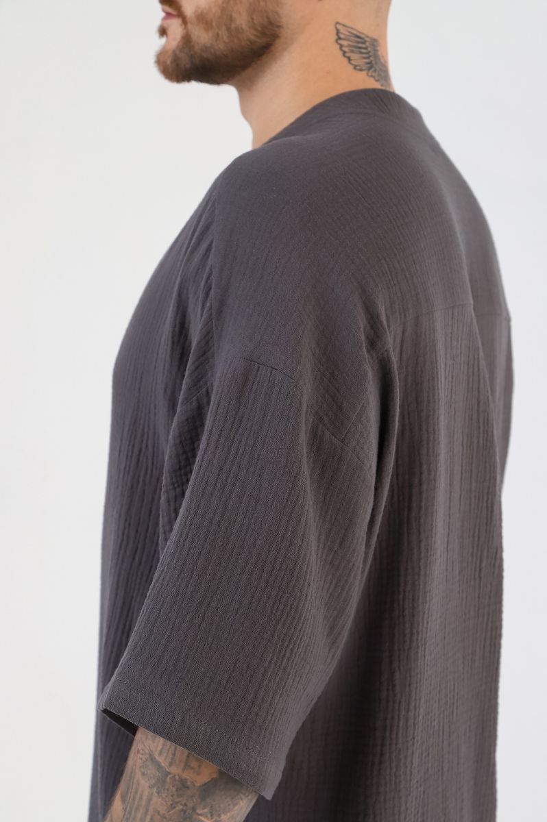 Костюм мужской, свободный, из фактурного трикотажа, состоящий из сорочки и шорт.