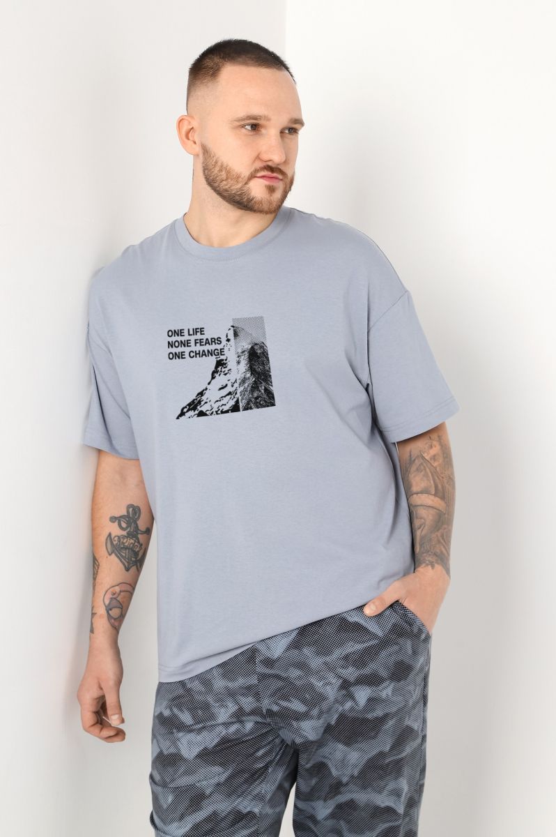 Костюм мужской из трикотажного полотна "кулирка" в комбинации двух видов , состоящий из футболки и брюк.