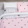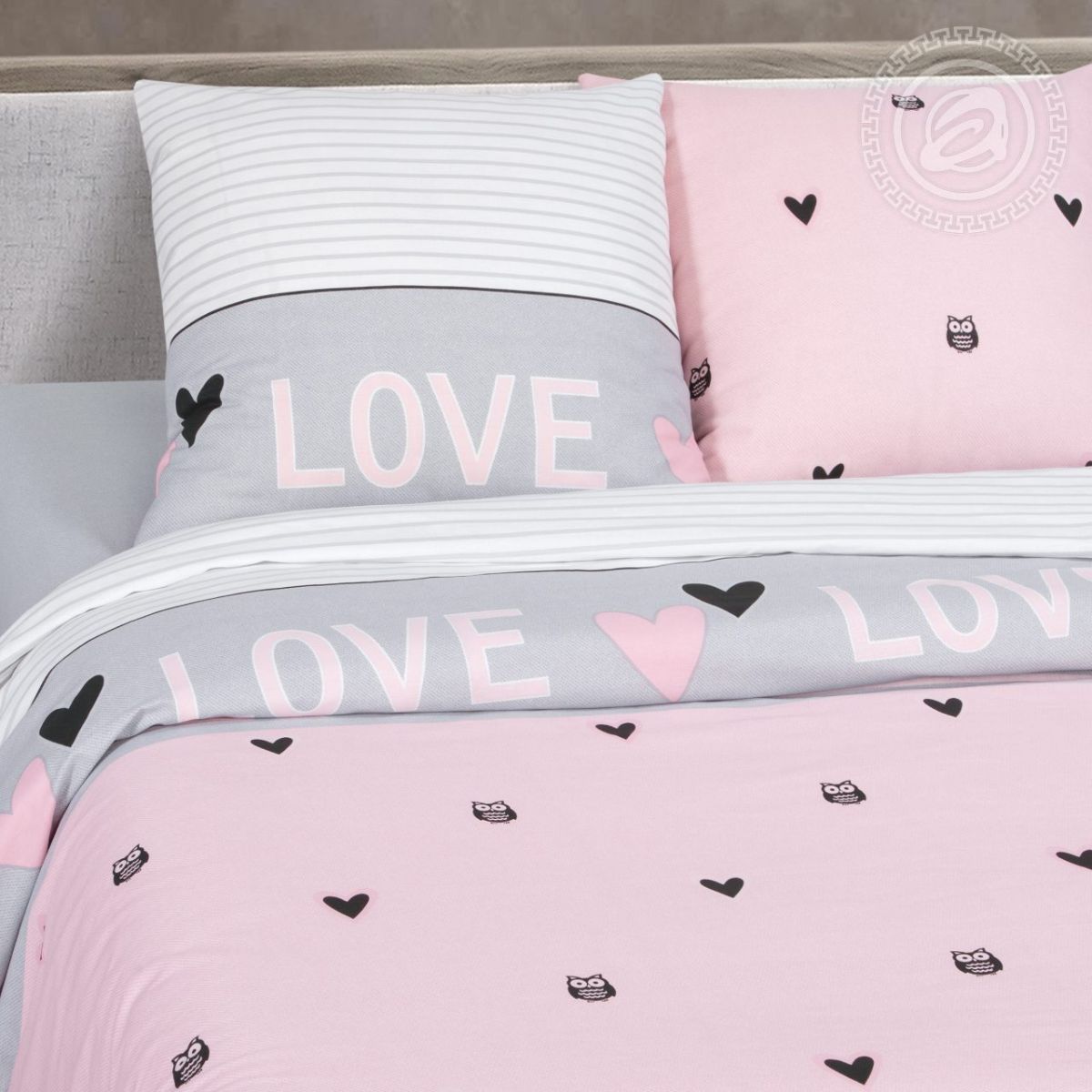Весьма необычным является новый рисунок на ткани под названием «Гламур». Изображение определенно имеет свой стиль: розовый фон, на котором будто разбросаны маленькие черные сердечки и милые совята, серая лента с надписью крупными буквами LOVE, и бело-серые полоски наверху. Стильное решение для комплекта постельного белья. На такую покупку могут решиться современные молодые люди и разнообразить привычные изображения более старшее поколение. В любом случае, сочетание цветов приятно радует глаз, а общая композиция необычная и стильная.