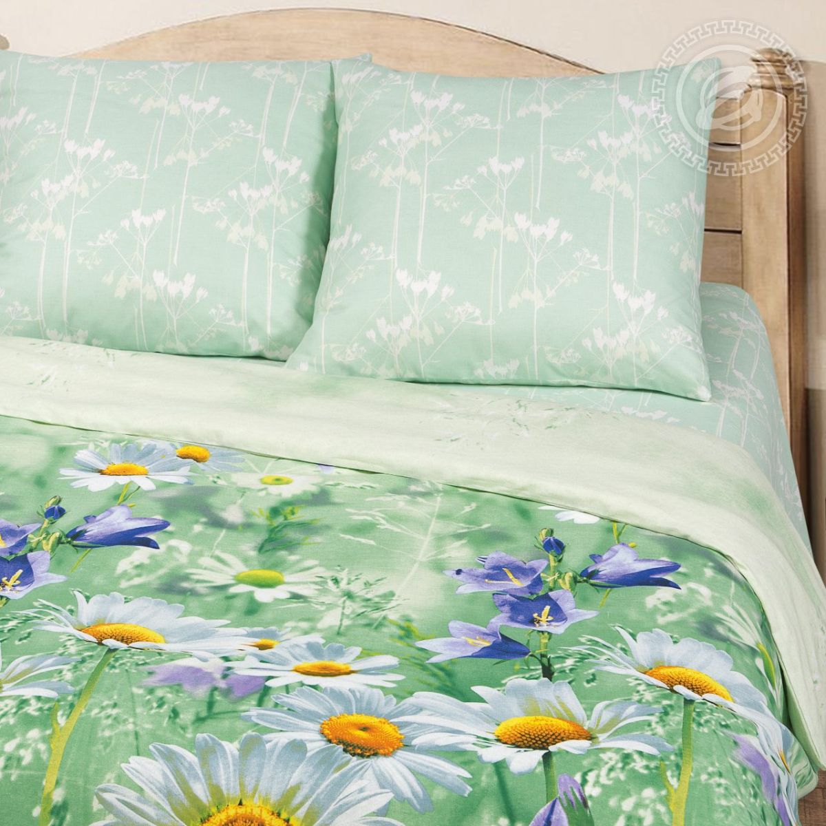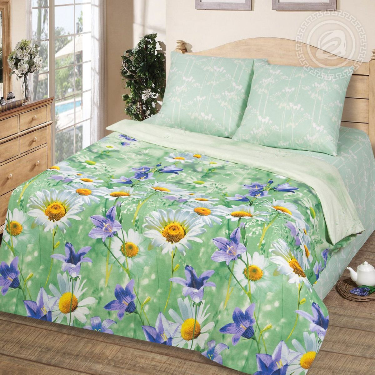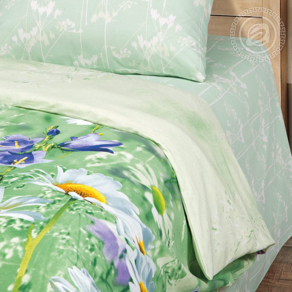 Рисунок на ткани под названием «Полюшко» обладает расслабляющим эффектов для всех тех, кто любит природу. Зеленый фон благоприятно влияет на психоэмоциональное состояние человека, а крупные яркие цветы добавляют красок и возвращают к приятным летним деньгам, проведенным на природе. Изображение не случайно носит название «Полюшко», ведь именно с бескрайними просторами и ассоциируются ромашки и колокольчики. Постельное белье, выполненное с таким рисунком, будет способствовать восстановлению сил как физических, так и духовных.