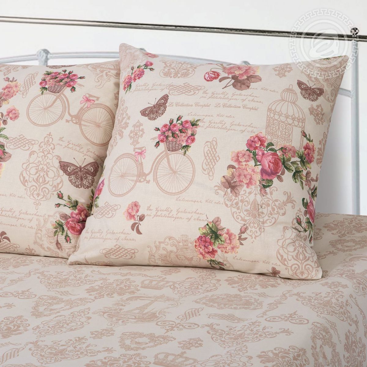 «Шебби-Шик» - постельное белье с рисунком, которое олицетворяет образ французской романтики. Комплект из бязи выполнен в нежных пудровых оттенках и украшен элегантной композицией с любимыми акцентами: Эйфелевой башней, прогулочными велосипедами и охапками душистых цветов. Дизайн в стиле шебби-шик с французским лоском – великолепный винтаж для классической спальни.