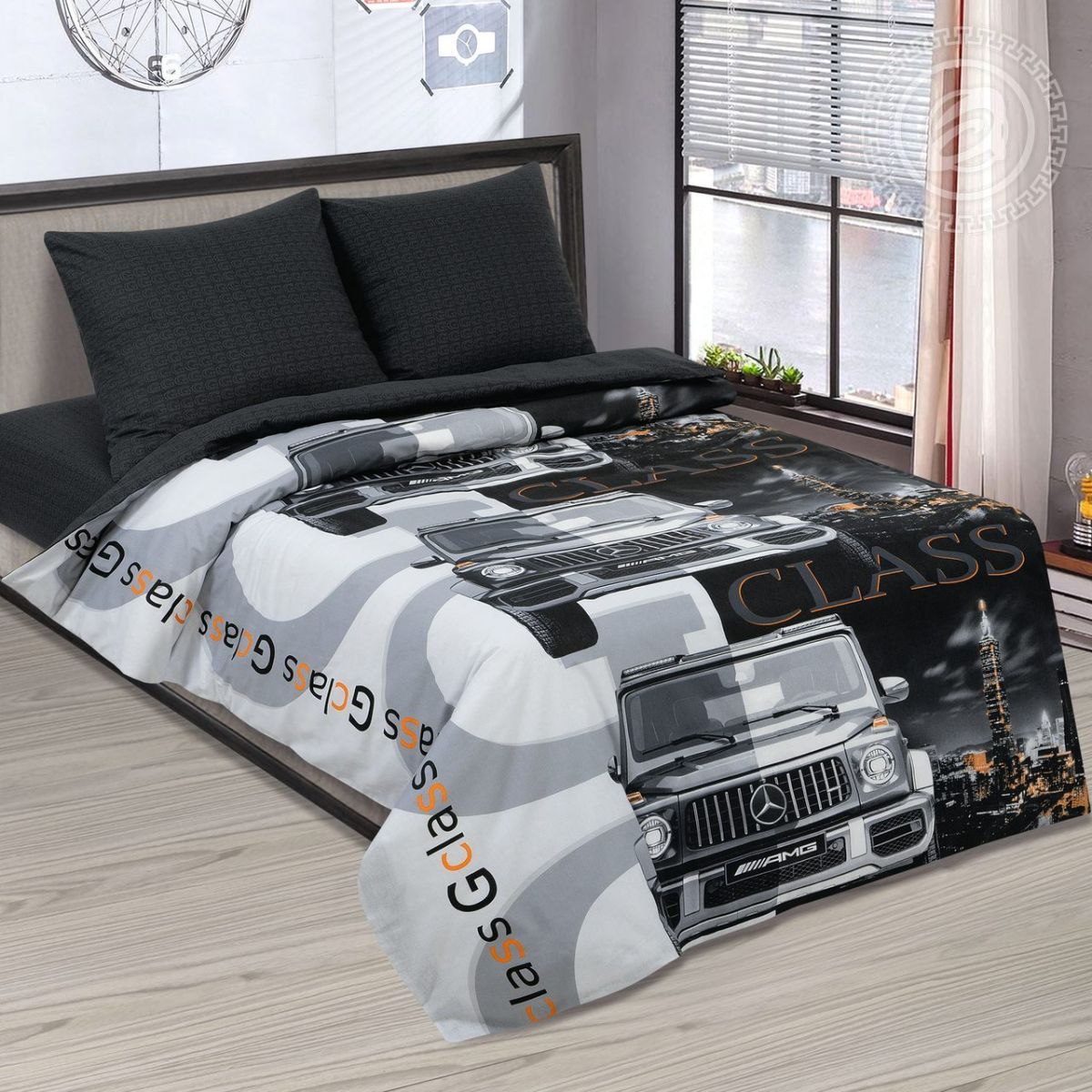 На комплекте из поплина «Статус» один из самых элитных и стильных автомобилей, который точно понравится мальчишкам. Постельное белье для подростков выполнено в лаконичной цветовой гамме и украшено видами ночного города. Кажется, будто внедорожник мчится по дороге мимо светящихся огней, неоновых вывесок и небоскребов.