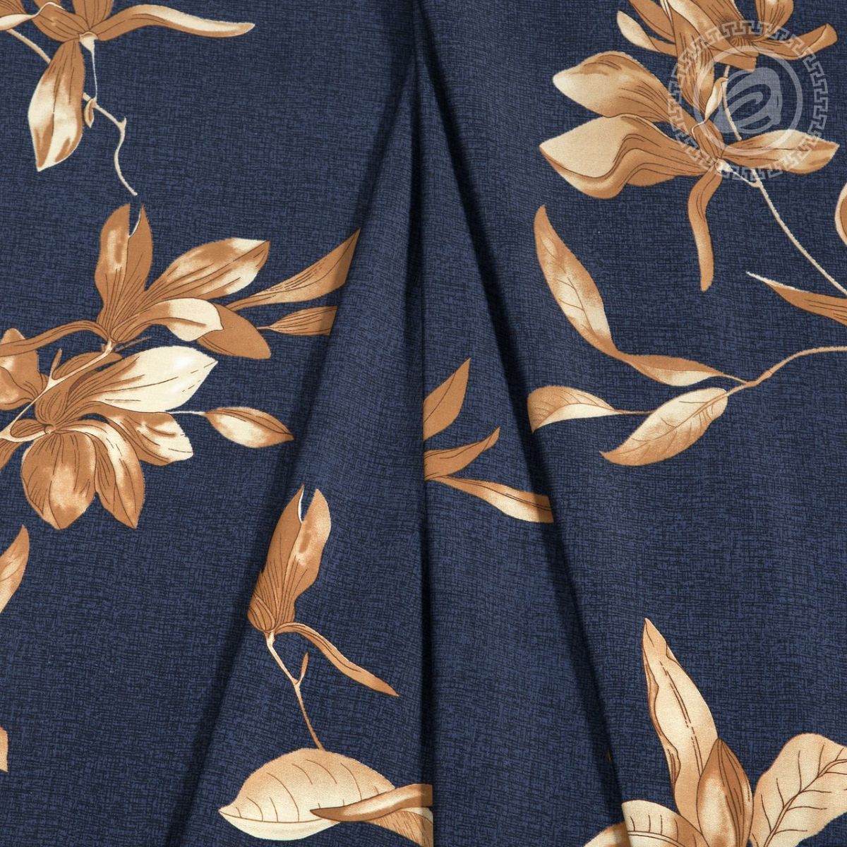 Глубокий синий цвет олицетворяет аристократизм и элегантность. А сияющие золотые мотивы в виде цветов придают композиции нотки роскоши и европейского шика.
