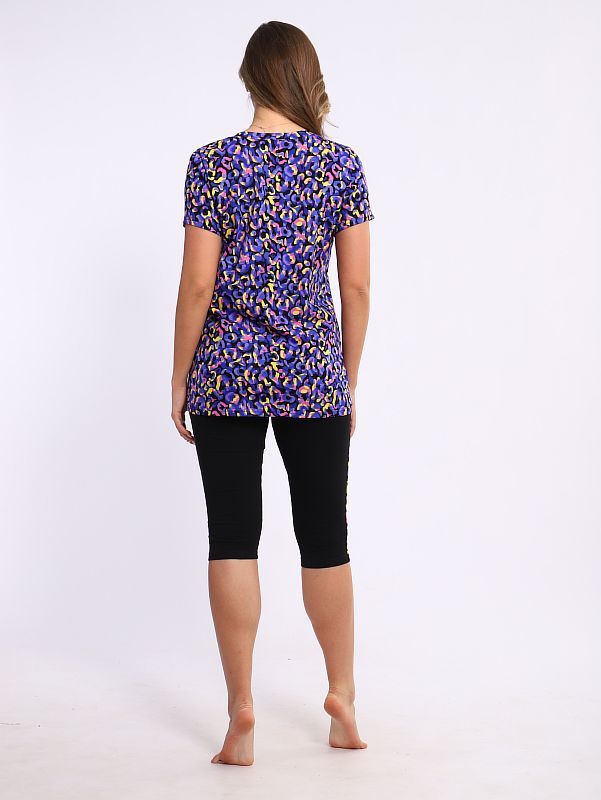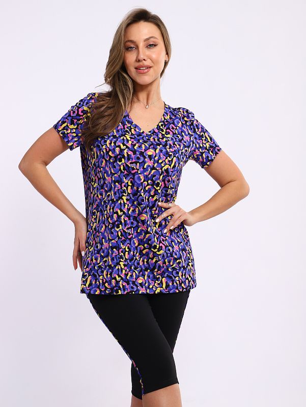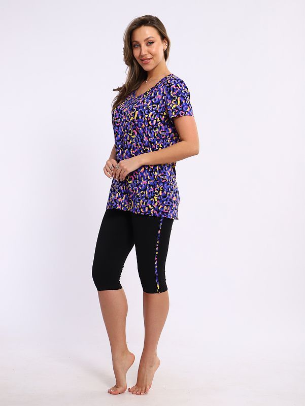 Женский костюм. футболка с V образный вырез, короткий рукав. Бриджи кулирка с лайкрой, украшены лампасами в цвет футболки