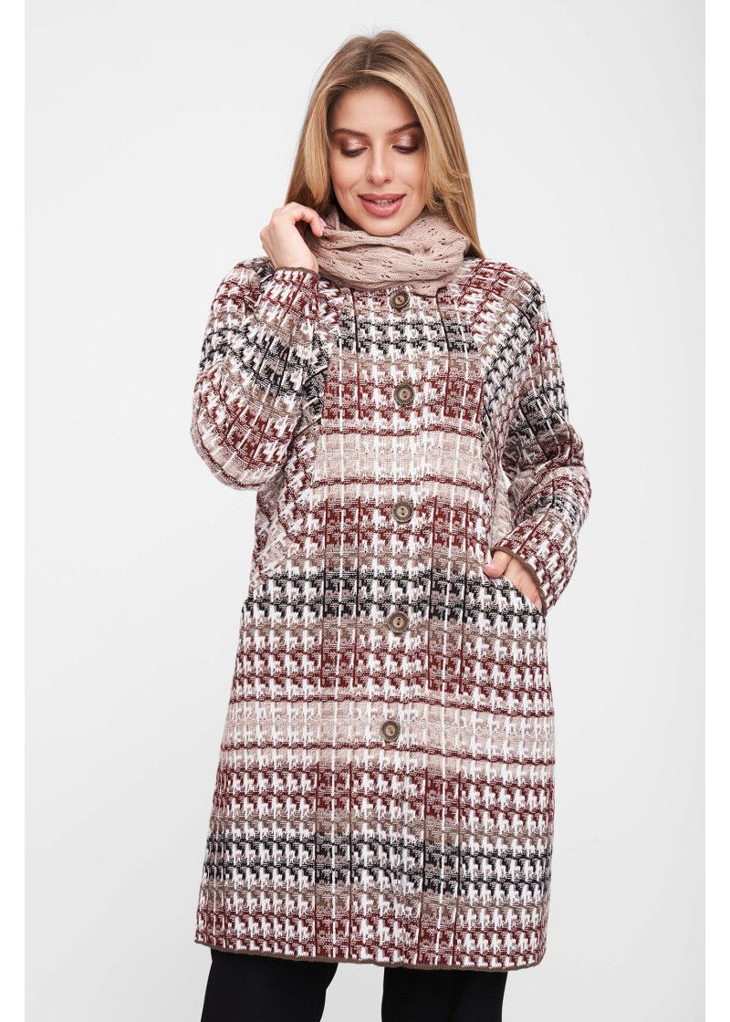 Изделие выполнено жаккардовым переплетением сочетающим геометрический рисунок и контрастные полосы.