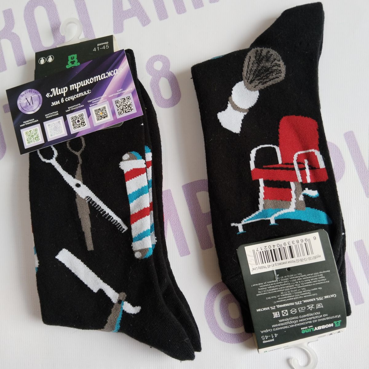 Читать все статьиНоски унисекс «Барбер шоп»