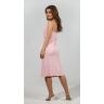 Сорочка из гладкокрашеного вискозного трикотажа, расширенная книзу, на узких бретелях, вытачанных из окантовки, с кружевным лифом «бюстье» на подкладке из основного материала и декоративной кружевной вставкой, соединяющей лиф и основную деталь переда. Верхний срез спинки и проймы окантованы основным материалом.