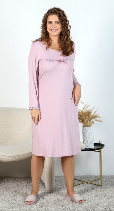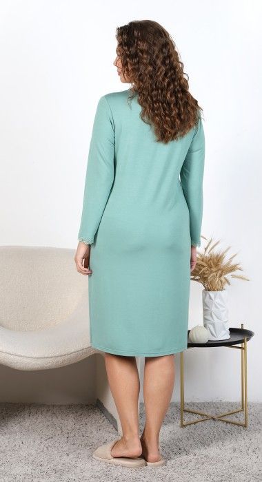 Сорочка женская из гладкокрашеного трикотажного вискозного полотна, прямого силуэта, с длинными втачными рукавами и горловиной овальной формы, окантованной основным материалом .