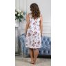 Сорочка женская из трикотажного полотна «кулирка» с набивным цветочным рисунком, без рукавов, слегка расширенная книзу. Полочка – с притачной кокеткой сложной формы, состоящей из 4-х деталей, отделанной кружевом и с декоративным бантиком из атласной ленты в центре. Основная деталь переда присборена по шву притачивания кокетки. Горловина спинки и проймы окантованы основным материалом.