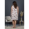 Сорочка женская, из трикотажного полотна «кулирка» с набивным рисунком, слегка расширенная книзу, без рукавов, с горловиной V-образной формы, переходящей в разрез спереди. Проймы, горловина и разрез окантованы основным материалом и дополнительно украшены декоративной строчкой «кроше» нитками контрастного цвета. По разрезу пришиты три декоративные пуговицы, имитирующие застежку